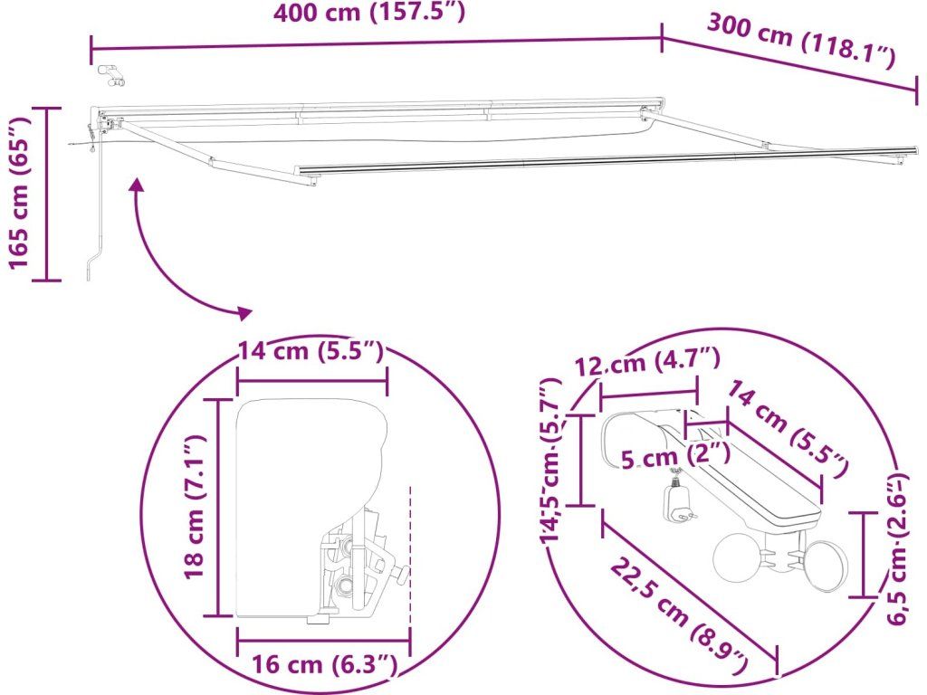 - Velikost látky markýzy: 3,8 x 2,95 m (d x š)