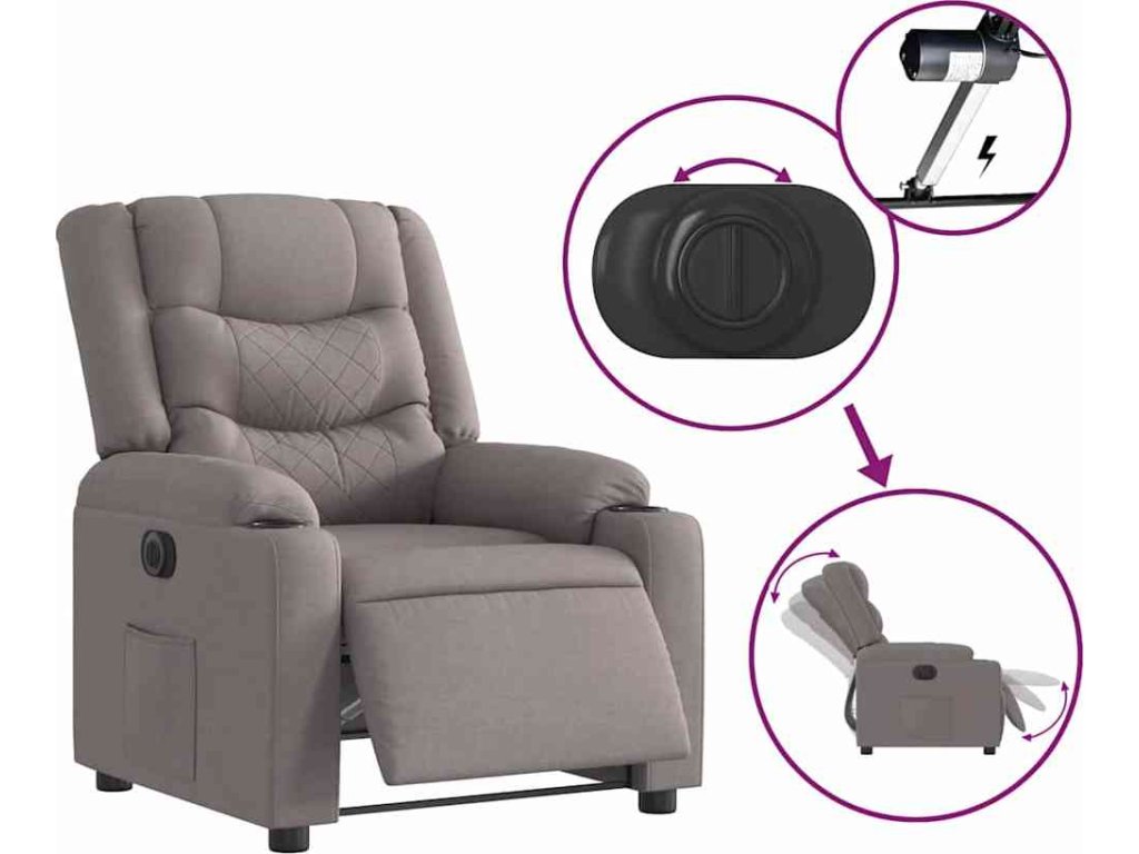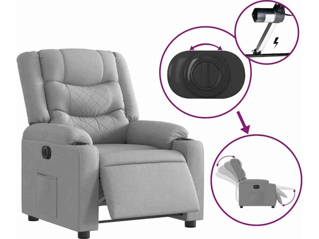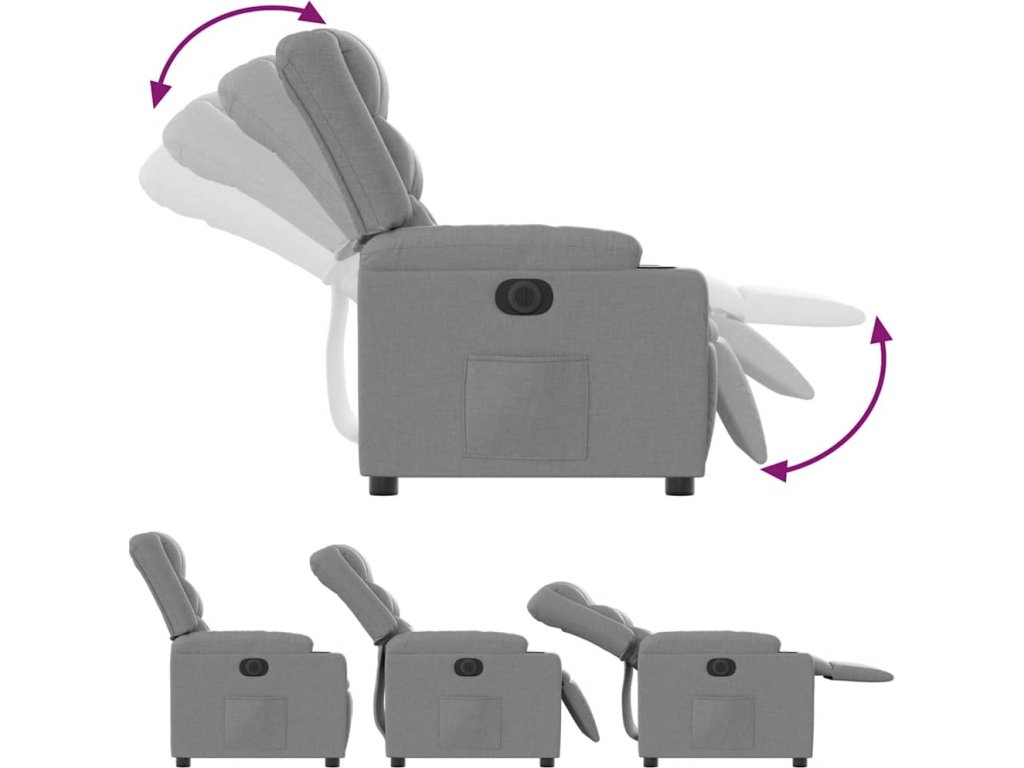 - Funkce elektrického sklápění: Toto polohovací křeslo je vybaveno elektromotorem. Jednoduchým stisknutím tlačítka na boku křesla můžete automaticky nastavit opěrku nohou a opěradlo do libovolné polohy tak, abyste se cítili pohodlně. Tato funkce umožňuje maximální náklon 135 stupňů. Opěradlo se navíc může jednoduchým stisknutím tlačítka automaticky vrátit do původní polohy.