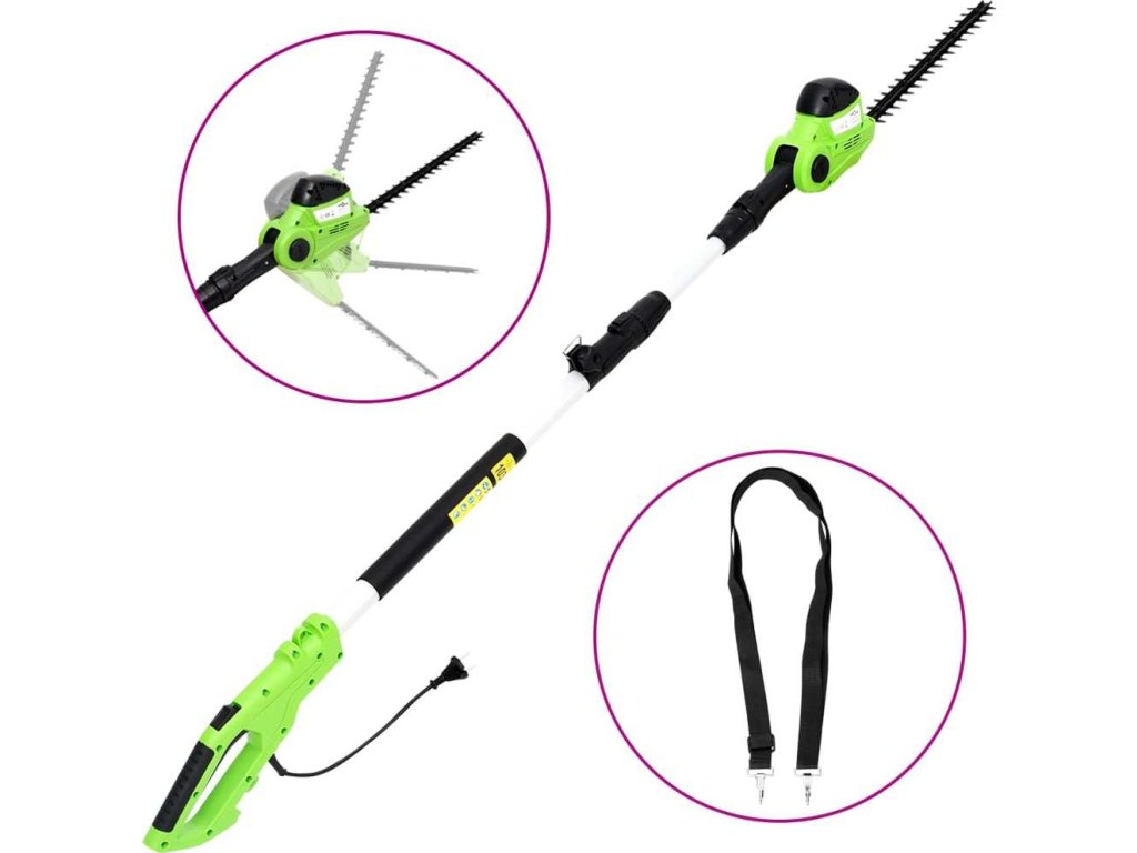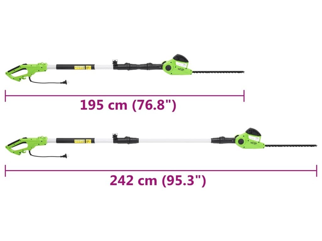 Tyto teleskopické tyčové nůžky na živý plot jsou vybaveny 550wattovým motorem, který nabízí efektivní délku střihu 410 mm a snadno upraví živé ploty do požadovaného tvaru. Už nebudete potřebovat žebřík ani muset nepohodlně pracovat nad hlavou, protože nůžky na živý plot jsou délkově nastavitelné a snadno s nimi všude dosáhnete. Uživatelsky příjemný ramenní popruh a ergonomicky tvarovaná rukojeť zajišťují bezpečnou a neunavující práci. Kromě toho lze žací lištu nastavit do požadované polohy řezání od cca -45° až + 90° pro splnění různých požadavků.