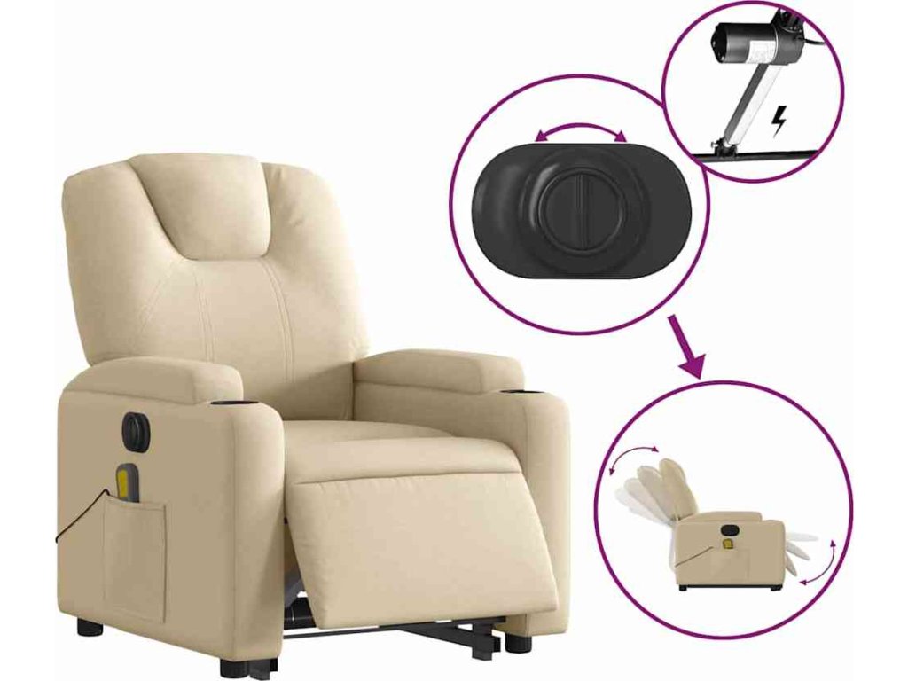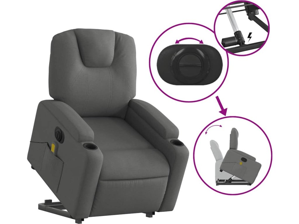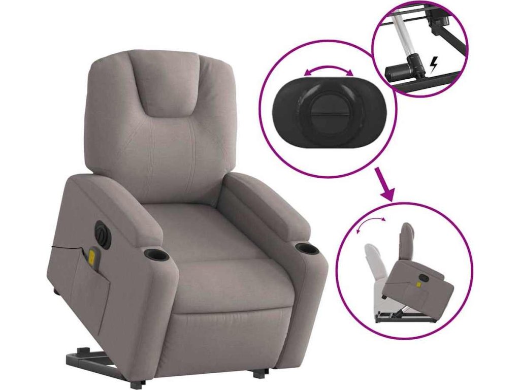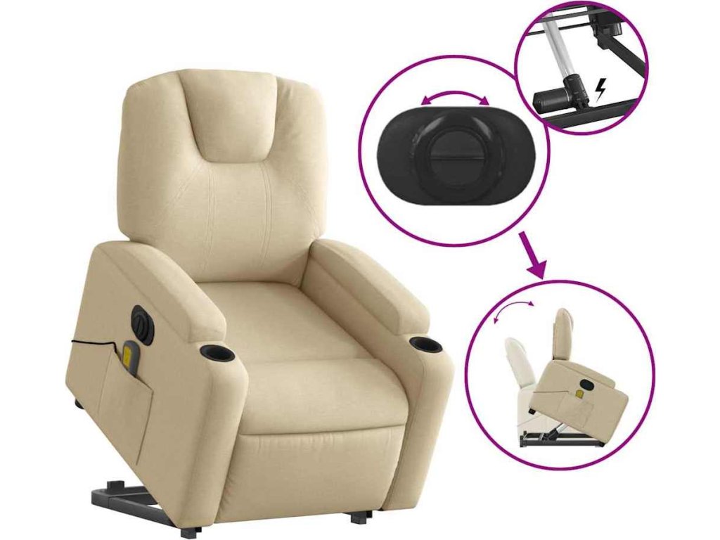 Elektrické zvedací masážní polohovací křeslo textil [3204413]