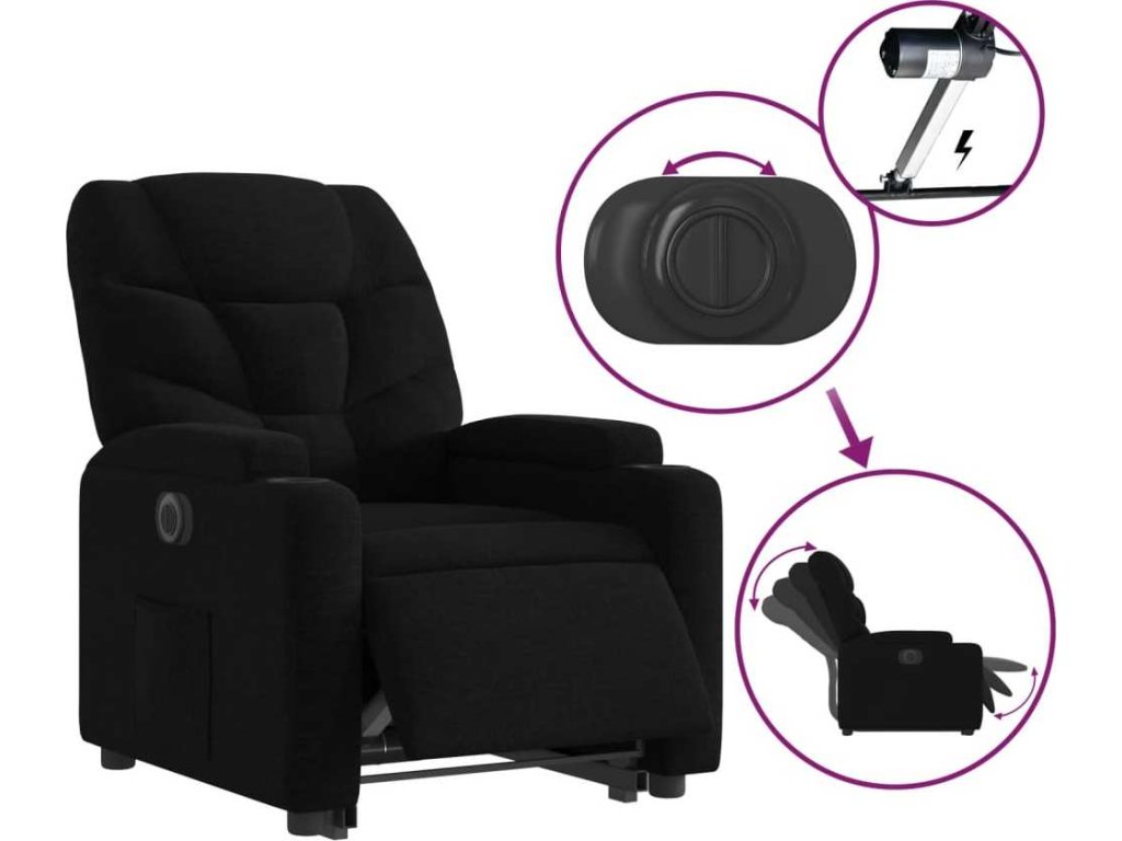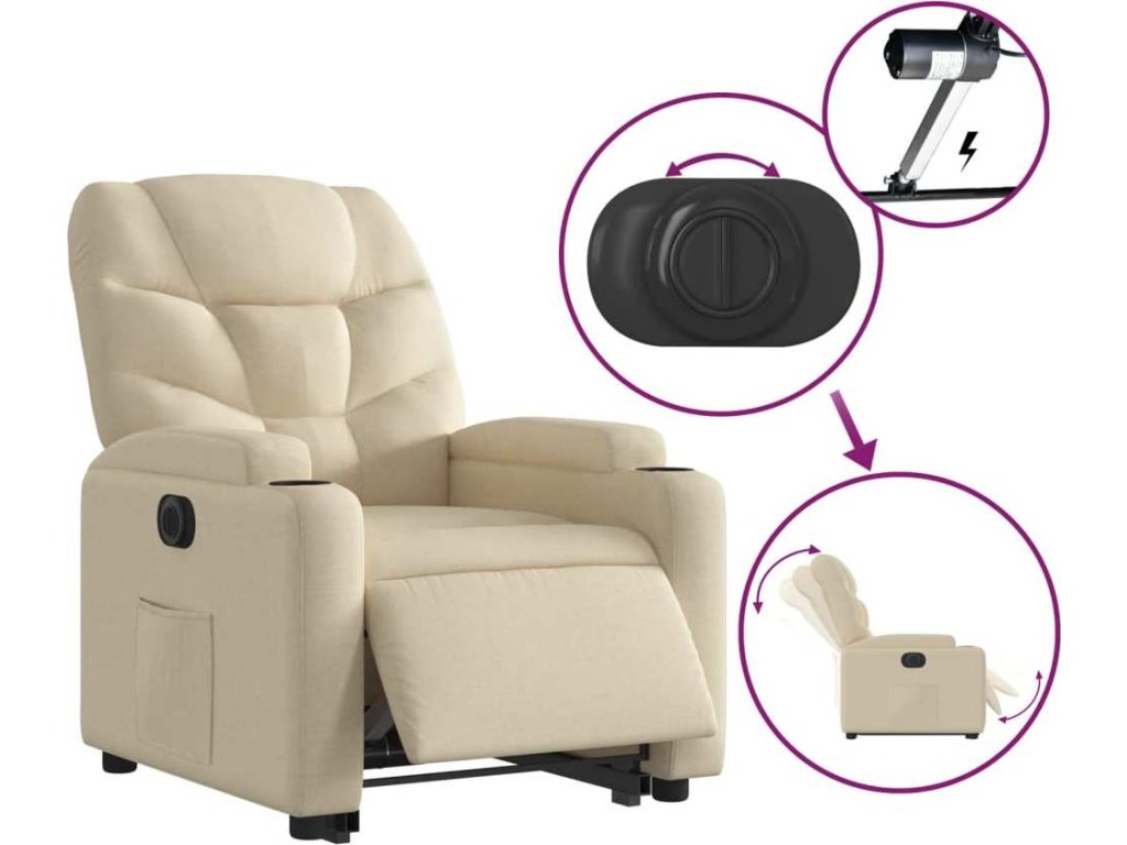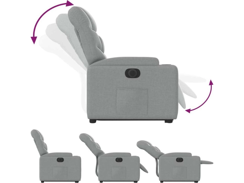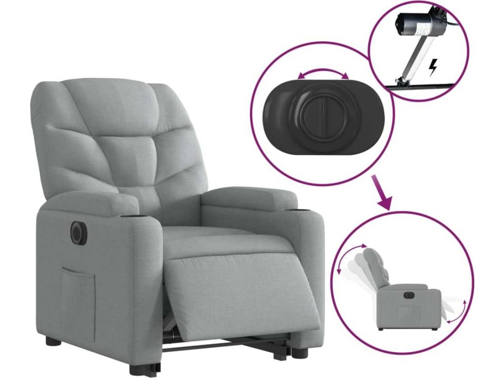 - Funkce elektrického sklápění: Toto polohovací křeslo je také vybaveno elektromotorem. Jednoduchým stisknutím tlačítka na boku křesla můžete automaticky nastavit opěrku nohou a opěradlo do libovolné polohy tak, abyste se cítili pohodlně. Tato funkce umožňuje maximální náklon 135 stupňů. Opěradlo se navíc může jednoduchým stisknutím tlačítka automaticky vrátit do původní polohy.