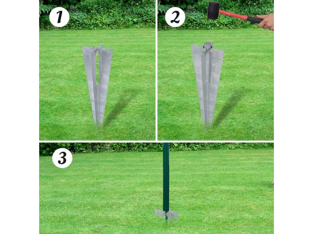 Instalace euro plotu s kolíky je snadná a rychlá. Euro plot dodáváme se sloupky a instalačním příslušenstvím včetně čepiček, držáků drátu a šroubů. V sadě jsou též kolíky a destičky, které výborně proniknou do trávníku a umožní vám snadno ukotvit sloupky.
