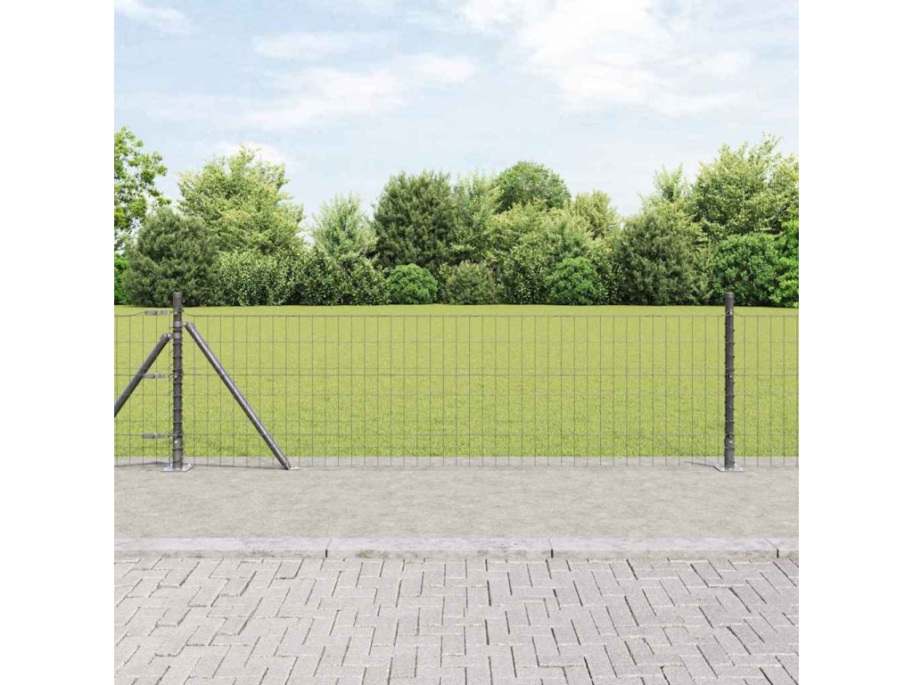 Plot s sloupkem Šedá 0,4 x 25 m Ocel a PVC [3350941]