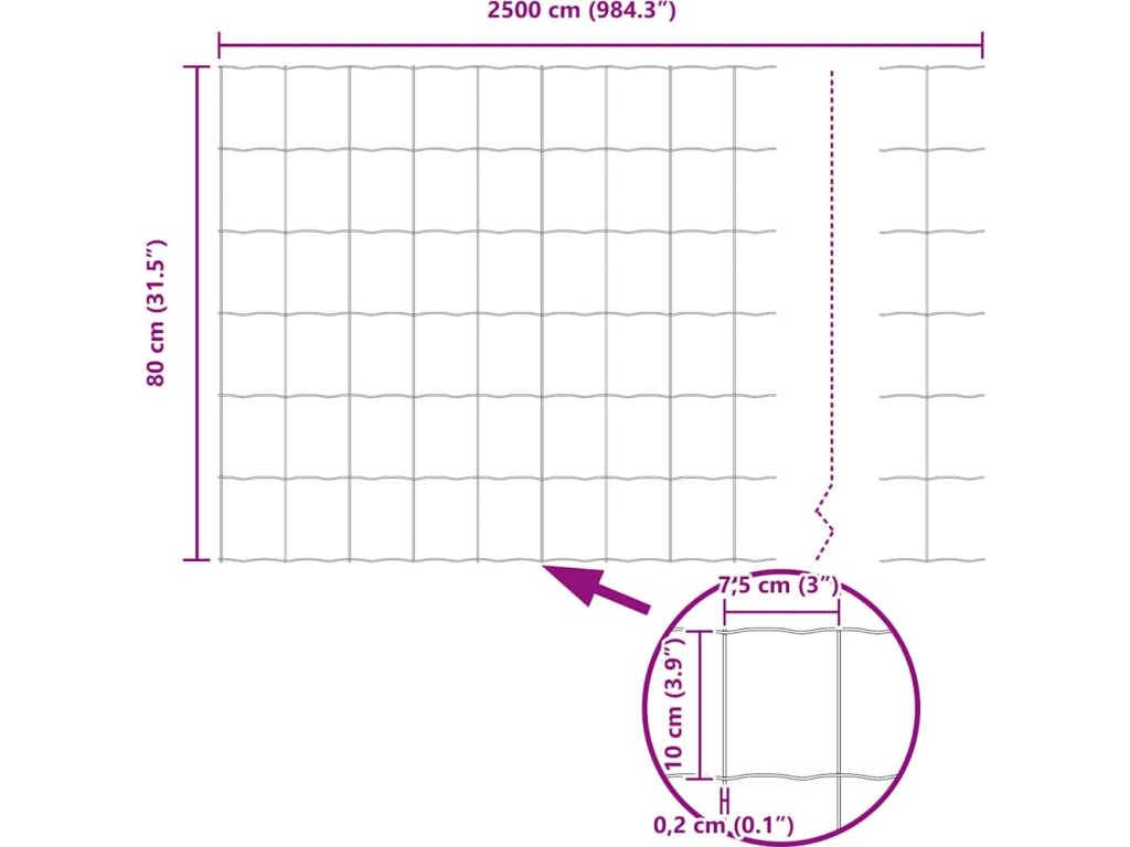 Euro plot Šedá 0,8 x 25 m Železo potažené PVC [42004540]