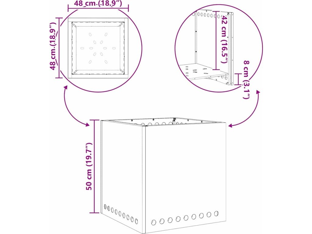 Toto moderní, čtvercové ohniště dodá vašemu venkovnímu prostoru styl. Jeho jednoduchý, funkční design je ideální pro pohodlné posezení a teplo na čerstvém vzduchu. Robustní ocelová konstrukce má matný povrch, který se hodí do minimalistických zahrad a vytváří atmosféru relaxace. Ať už je umístěné v zahradě, na terase nebo na dvoře, slouží jako středobod pro setkání s rodinou a přáteli.