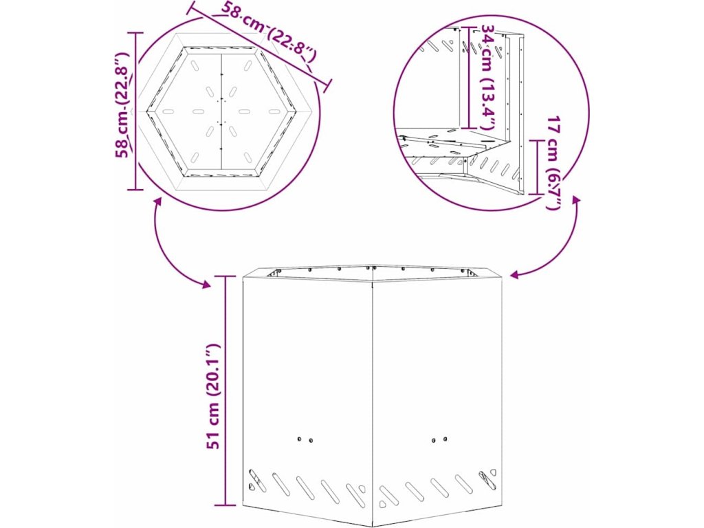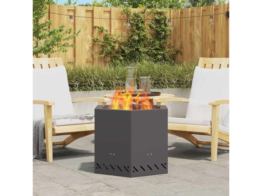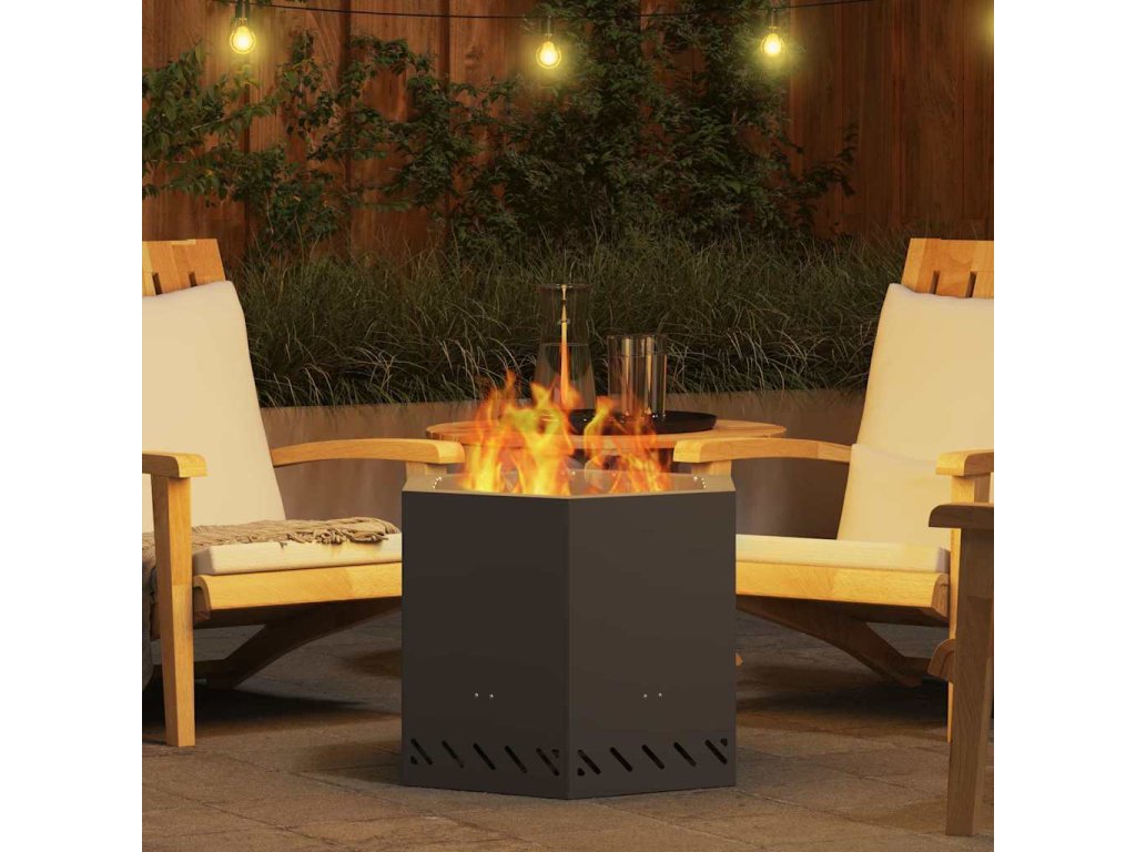 Toto moderní hexagonální ohniště obohatí jakýkoli venkovní prostor svým skvělým, současným designem. Je ideální pro ty, co mají rádi minimalistický styl. Spojuje čisté linie s praktičností a láká lidi, aby se sešli kolem příjemného ohně, což vytváří skvělé vzpomínky s přáteli a rodinou. Jeho hladký povrch a promyšlený design ho dělají výjimečným kouskem v exteriéru a slibují eleganci spolu s užitečností.