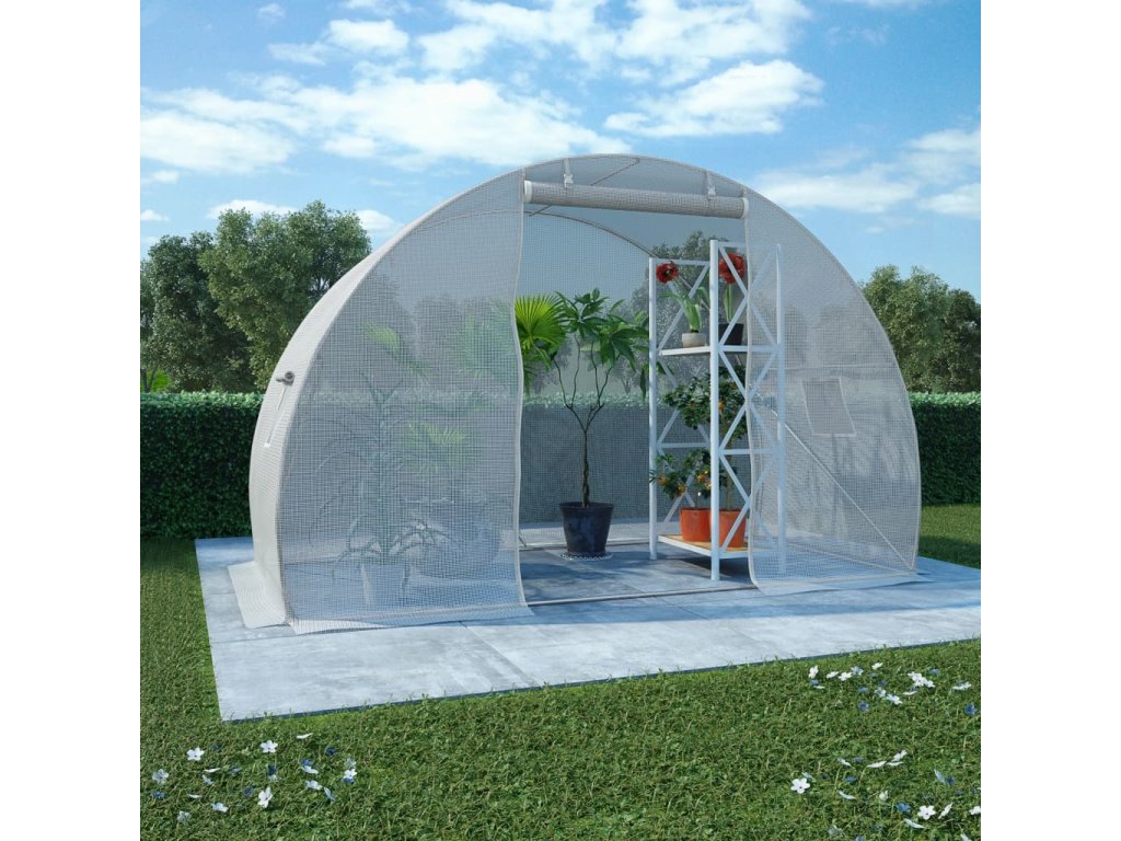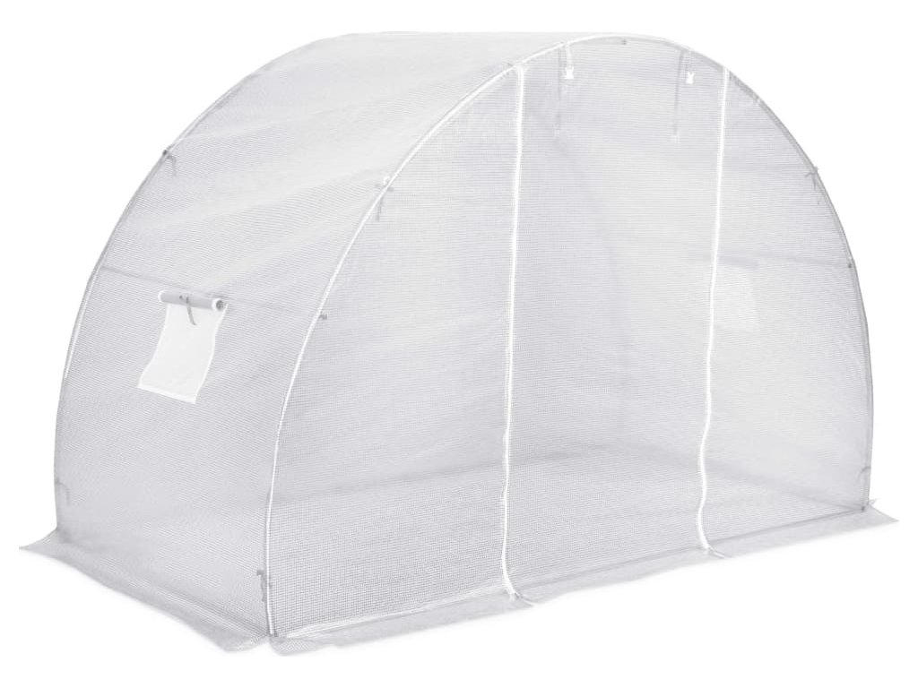 Skleník vaše rostliny ochrání nejen před větrem a deštěm, ale také před ptáky a přímým slunečním svitem. Je vyroben z PE tkaniny s gramáží 170 g/m², která je o 25 % těžší než standardní síťovina vyrobená konkurencí. Skleník disponuje rámem z pozinkované oceli, který skvěle vzdoruje korozi, takže je velmi stabilní. Navíc je vybavený dvěma odvětrávacími okénky o rozměrech 38 x 38 cm a dveřmi 100 x 185 cm.
