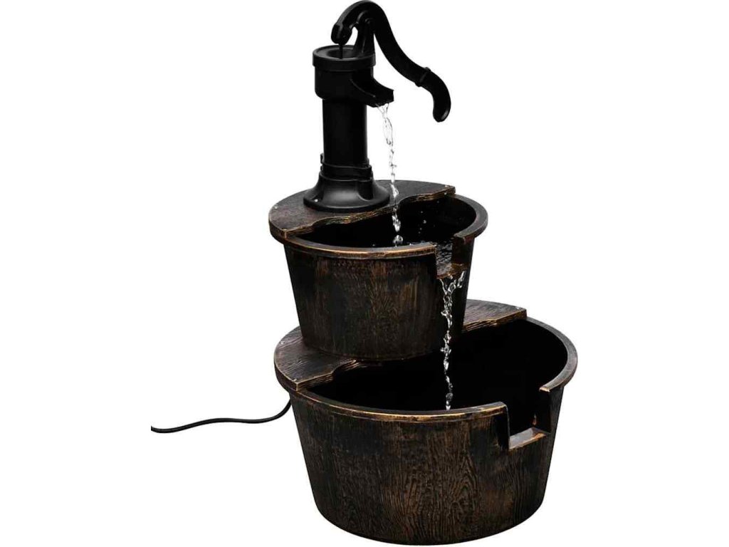 Tato fontána ve vintage stylu má dekorativní design pumpy. Může být snadno a rychle sestavena. Tato kašna je vybavena vodním čerpadlem s hladkým během a voda je nepřetržitě recirkulována.