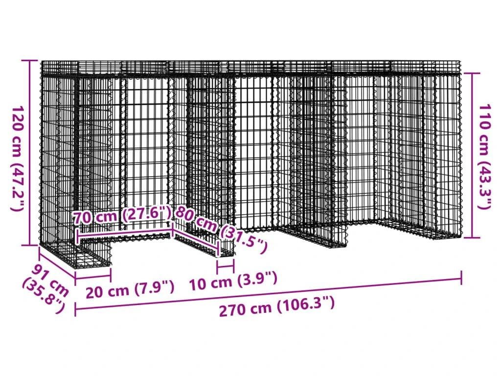 - Multifunkční design: Tento gabion je vhodný nejen pro uložení 3 popelnic, ale jeho horní část je vhodná i pro pěstování květin a rostlin, které dodají vaší zahradě zářivou dekoraci.