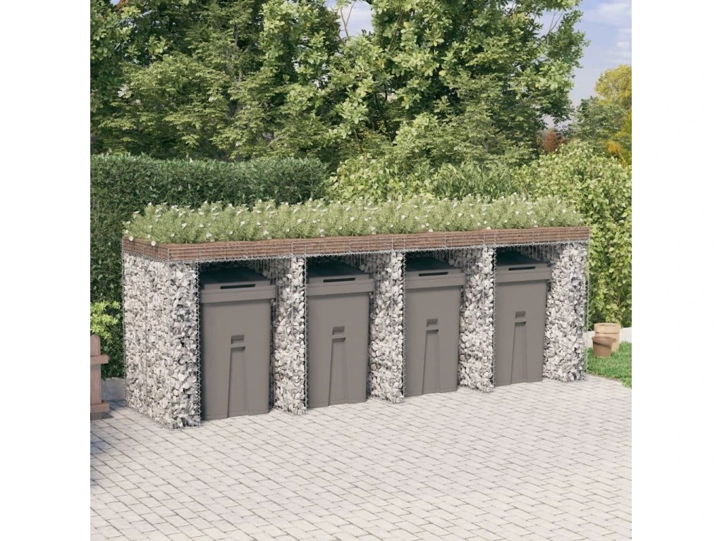 - Multifunkční design: Tento gabion je vhodný nejen pro uložení 4 popelnic, ale jeho horní část je vhodná i pro pěstování květin a rostlin, které dodají vaší zahradě zářivou dekoraci.