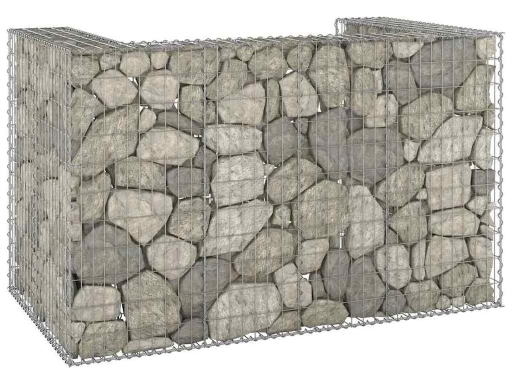 Robustní gabion je určený k naplnění kameny nebo štěrkem. Je vyrobený z nerezové pozinkované oceli, která nepodléhá povětrnostním vlivům a zaručuje, že je gabion pevný a stabilní. Pletivovou mřížku tvoří svislé a vodorovné dráty, které jsou svařené všude, kde se překřižují, takže je gabion mimořádně pevný. Tato gabionová zástěna pojme 2 popelnice.