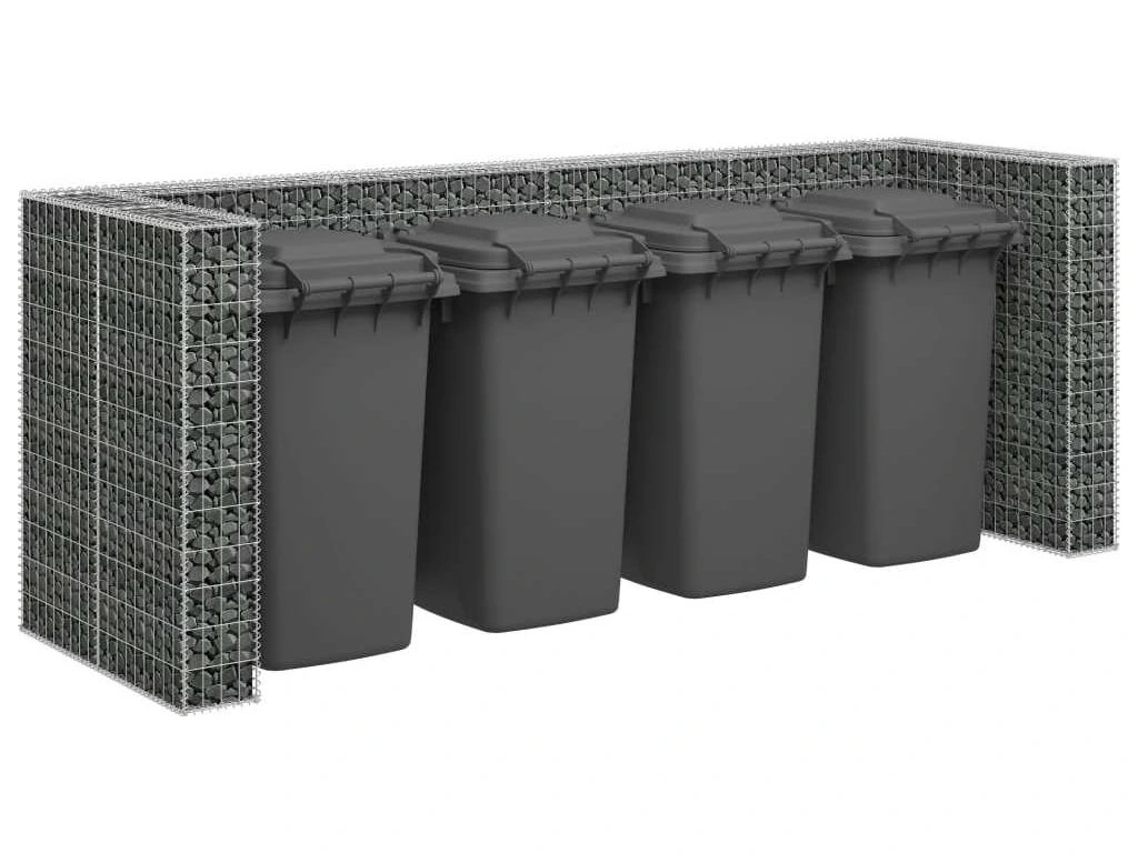 Robustní gabion je určený k naplnění kameny nebo štěrkem. Je vyrobený z nerezové pozinkované oceli, která nepodléhá povětrnostním vlivům a zaručuje, že je gabionové stání pevné a stabilní. Pletivovou mřížku tvoří svislé a vodorovné dráty, které jsou svařené všude, kde se překřižují, takže je gabion mimořádně pevný. Naše gabionové stání pojme 4 popelnice a jeho sestavení je velmi snadné.