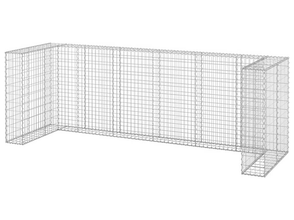 Robustní gabion je určený k naplnění kameny nebo štěrkem. Je vyrobený z nerezové pozinkované oceli, která nepodléhá povětrnostním vlivům a zaručuje, že je gabion pevný a stabilní. Pletivovou mřížku tvoří svislé a vodorovné dráty, které jsou svařené všude, kde se překřižují, takže je gabion mimořádně pevný. Tato gabionová zástěna pojme 4 popelnice.