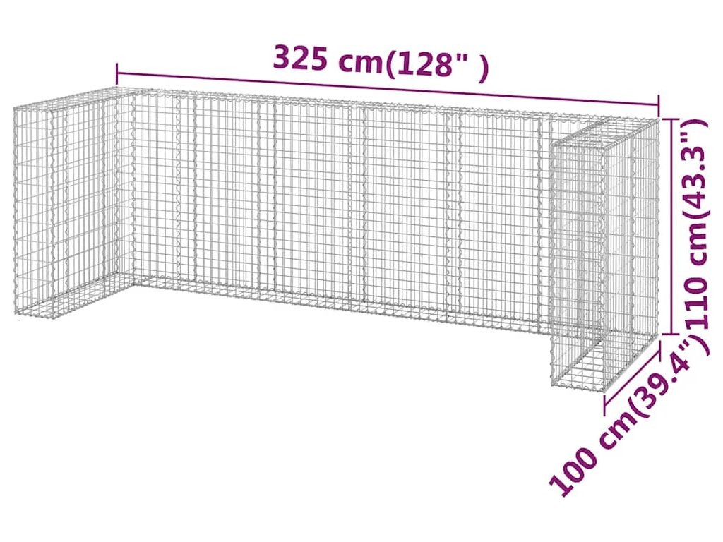 Gabionová zástěna pro popelnice pozinkovaná ocel 325x100x110 cm [151301]