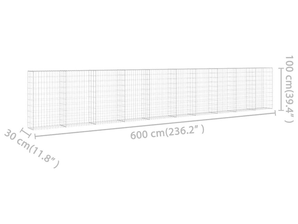 Gabionová zeď s víky z pozinkované oceli 600 x 30 x 100 cm [143584]