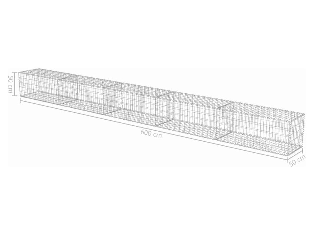 Gabionová zeď s víky z pozinkované oceli 600 x 50 x 50 cm [143581]