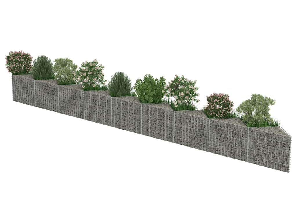 Robustní gabion je určen k tomu, aby byl naplněn kameny nebo štěrkem. Je vyrobený z nerezové pozinkované oceli, která nepodléhá povětrnostním vlivům, čímž zajišťuje výbornou stabilitu a odolnost vyvýšeného záhonu. Síťovou mřížku tvoří svislé a vodorovné dráty, jež jsou svařené všude, kde se kříží, aby byl gabion mimořádně pevný. Můžete si navíc zakoupit více různých modelů a stavením do řady z nich budovat zdi. Gabionovou zeď je snadné sestavit.