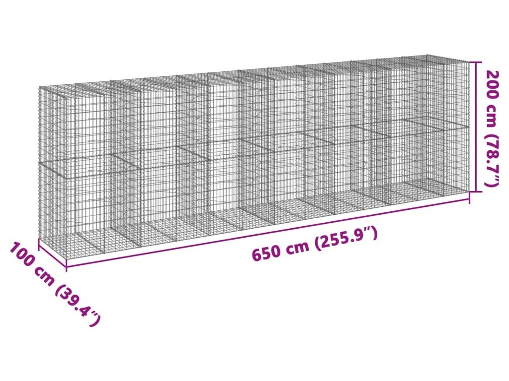 Gabionový koš s víkem 650 x 100 x 200 cm pozinkované železo [3295236]