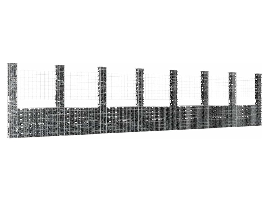 Gabionový koš ve tvaru U s 8 sloupky železo 860 x 20 x 200 cm [151295]