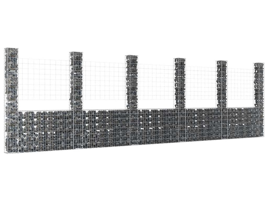 Gabionový koš ve tvaru U se 6 sloupky železo 620 x 20 x 200 cm [151293]
