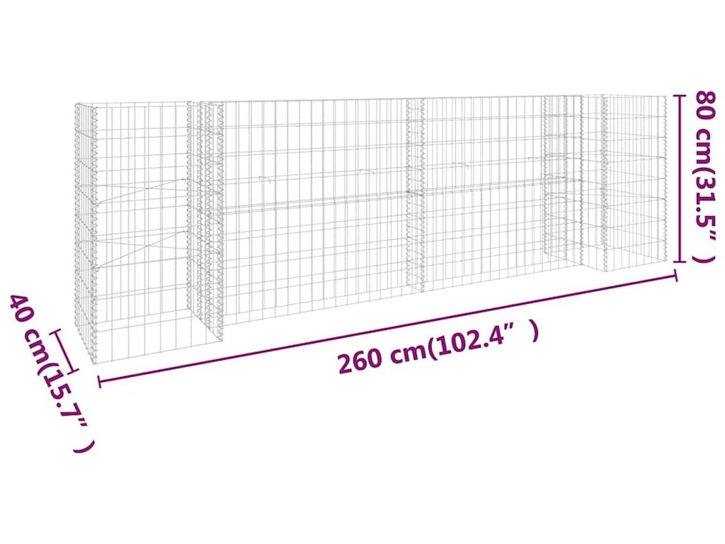 Robustní gabion je designovaný tak, aby ho bylo možné naplnit kameny nebo štěrkem. Gabion je vyrobený z nerezavějící oceli, která nepodléhá povětrnostním vlivům, a proto je velmi stabilní a odolný. Síťová mřížka je tvořená svislými a vodorovnými dráty, které jsou ve všech spojích svařené, aby se tak zajistila mimořádná pevnost.