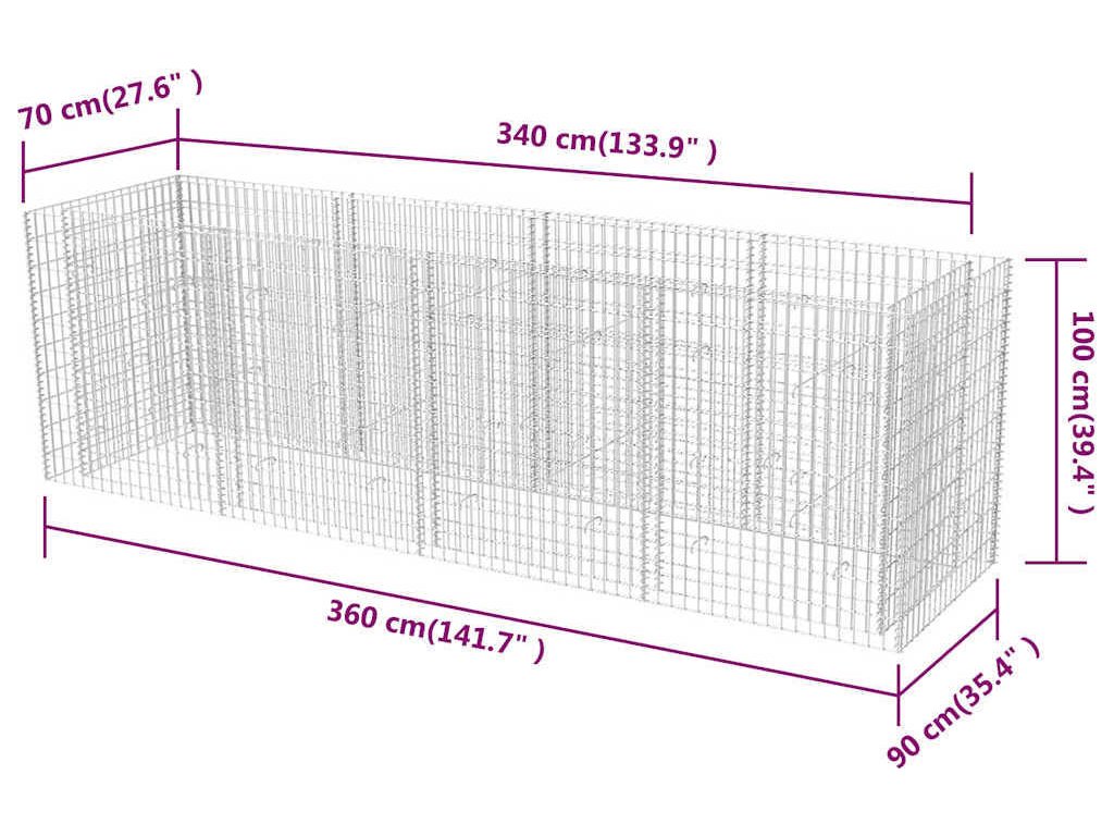 Gabionový vyvýšený záhon ocel 360 x 90 x 100 cm [142553]
