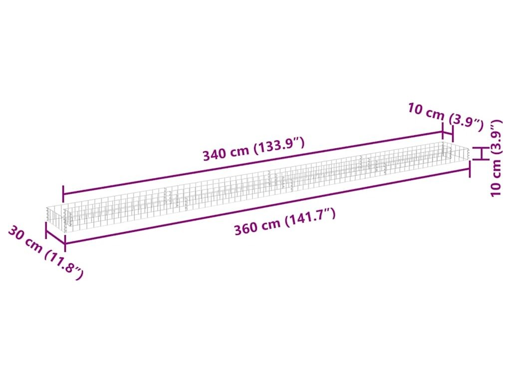 Gabionový vyvýšený záhon pozinkovaná ocel 360 x 30 x 10 cm [145640]