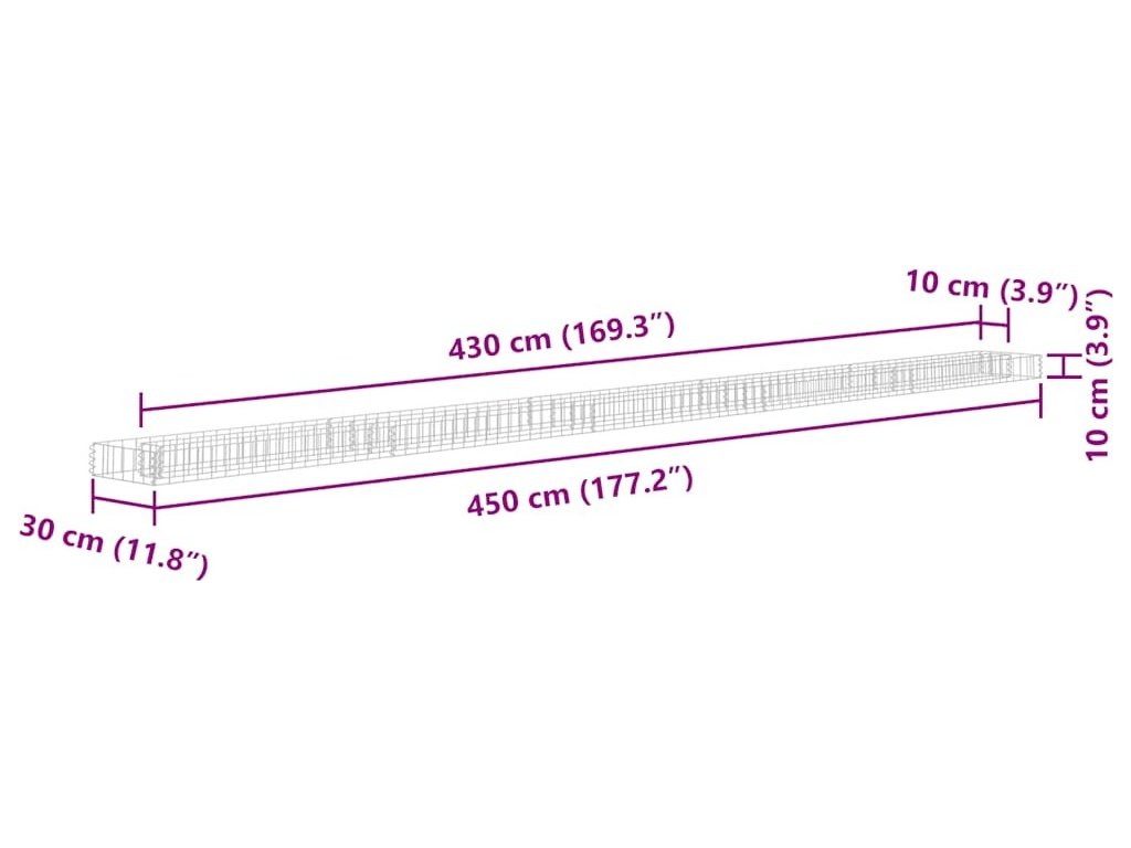 Gabionový vyvýšený záhon pozinkovaná ocel 450 x 30 x 10 cm [145644]
