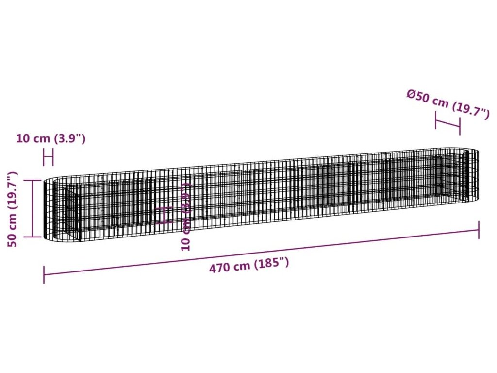 Gabionový vyvýšený záhon pozinkované železo 470 x 50 x 50 cm [152029]
