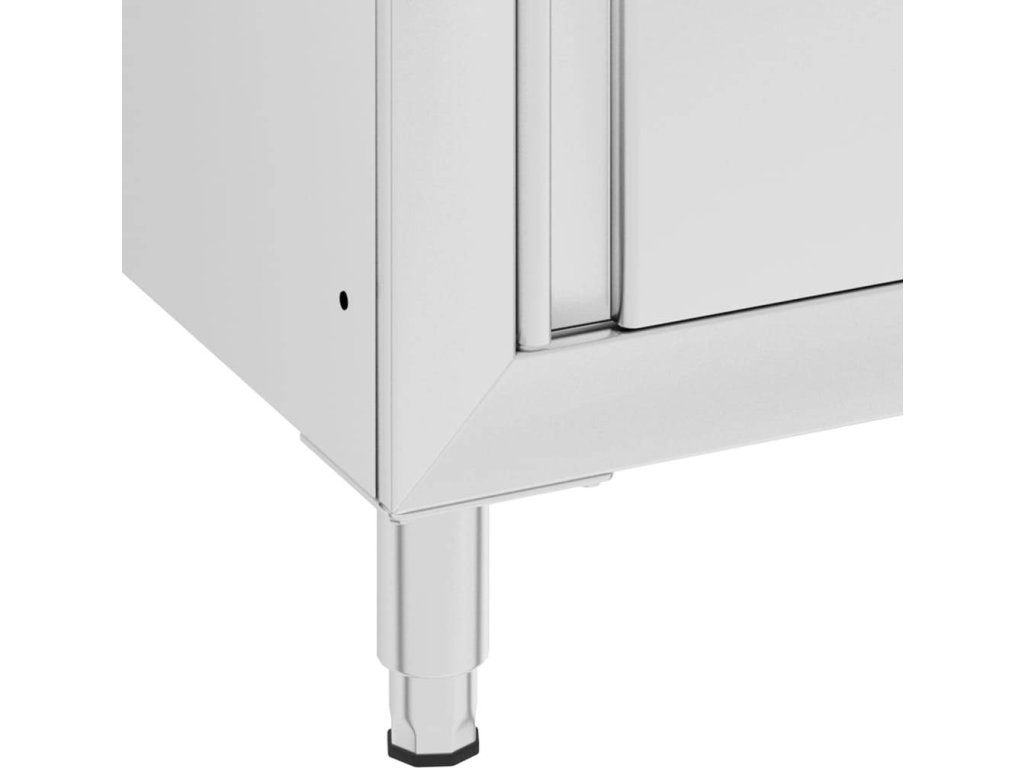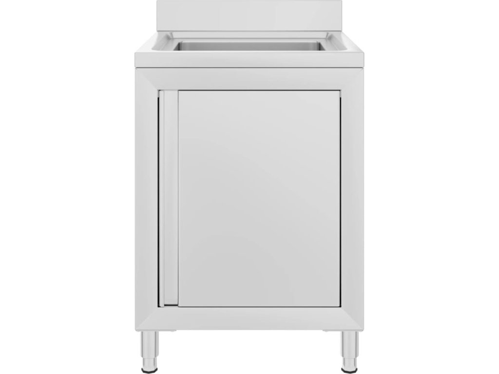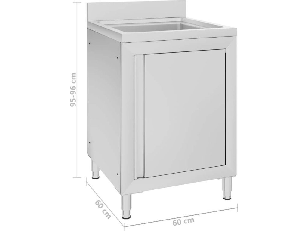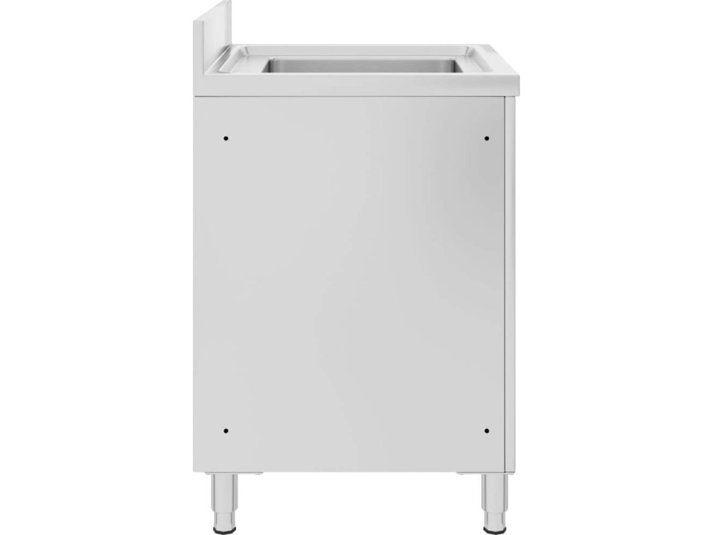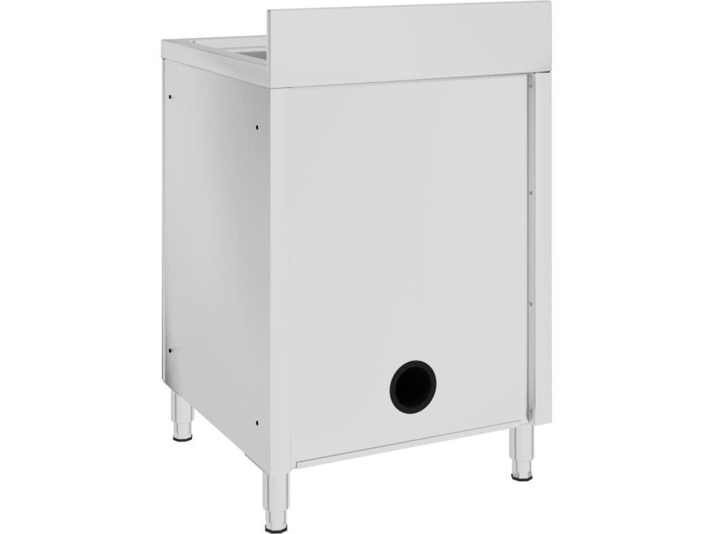 Tato skříňka je vyrobená z kvalitní nerezové oceli a je robustní, antikorozní a snadno se čistí. Spodní skříňka poskytuje dostatek úložného prostoru pro úklidové vybavení a příslušenství. Nastavitelné nožičky umožňují vyrovnat skříňku i na vodorovné ploše. Součástí skříňky je 10 cm vysoký zadní lem a otvor na vodní trubku.