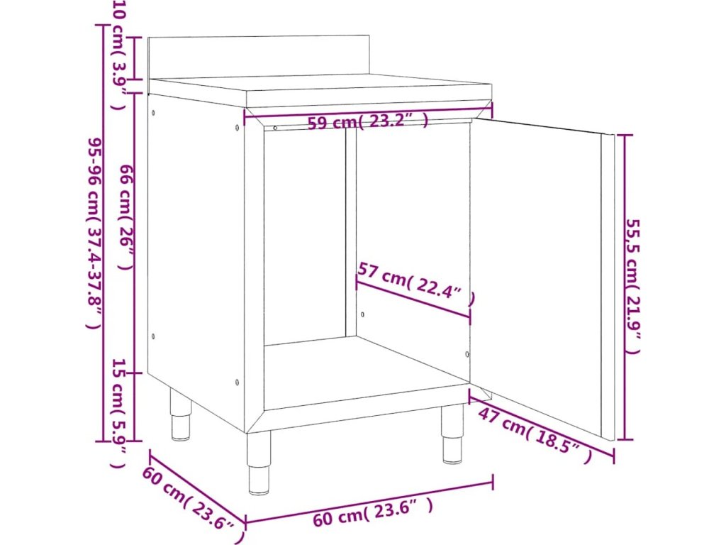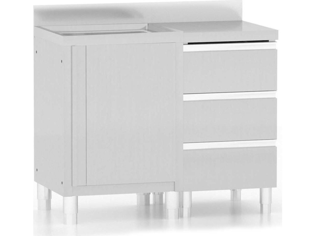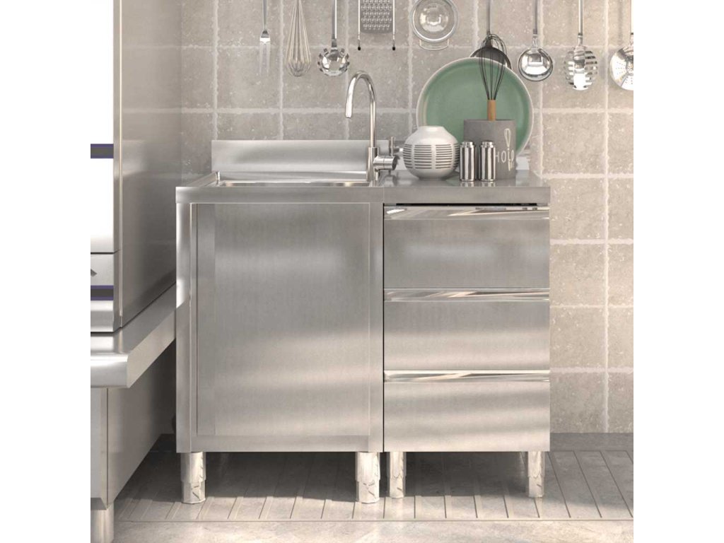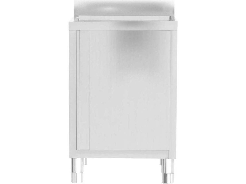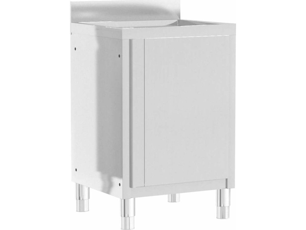 Tato úložní skříňka je vyrobená z kvalitní nerezové oceli a je robustní, antikorozní a snadno se čistí. Skříňka poskytuje dostatek úložného prostoru pro úklidové vybavení a příslušenství. Nastavitelné nožičky umožňují vyrovnat skříňku i na nerovné ploše. Součástí skříňky je 10 cm vysoký zadní lem a otvor na vodní trubku.