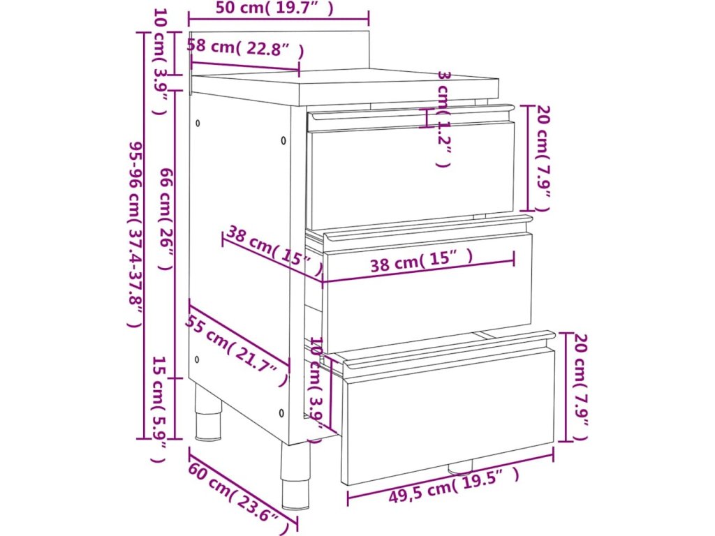- Rozměry: 50 x 60 x (95–96) cm (Š x H x V)