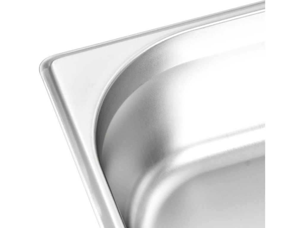 Gastro nádoba má pevnou konstrukci ze silné nerezové oceli a snadno se čistí. Jelikož je vyrobena z odolného materiálu, nepoškrábe se a nevyžaduje žádnou náročnou údržbu. Nádoba na jídlo má standardní GN rozměry, lze ji tedy používat univerzálně a v celé řadě kombinací. Zároveň se hodí do všech profesionálních kuchyňských linek a zařízení, jako jsou vodní lázně, nahřívače nádobí a salátové bary. Nádoby je možné naskládat do sebe a uklidit, aby zbytečně nezabíraly místo, jsou proto velice praktické a skvěle se hodí pro použití v restauracích, v hotelech, na večírcích, ale i doma.