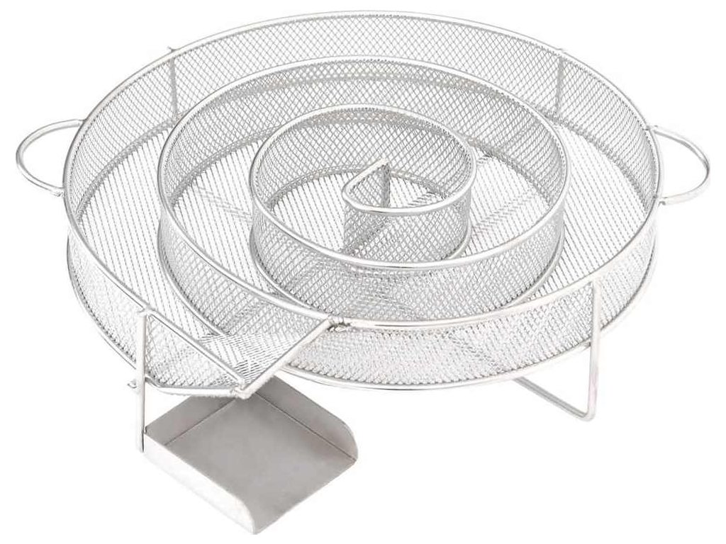 - Pevná mřížková konstrukce: Kompaktní mřížka ve tvaru šneka umožňuje rovnoměrné a pomalé hoření třísek až po dobu 7 hodin. Délka trvání závisí především na druhu dřeva určeného k uzení. Pro dosažení nejlepších výsledků se doporučuje používat štěpky o velikosti zrn 0,5–2,0 mm.