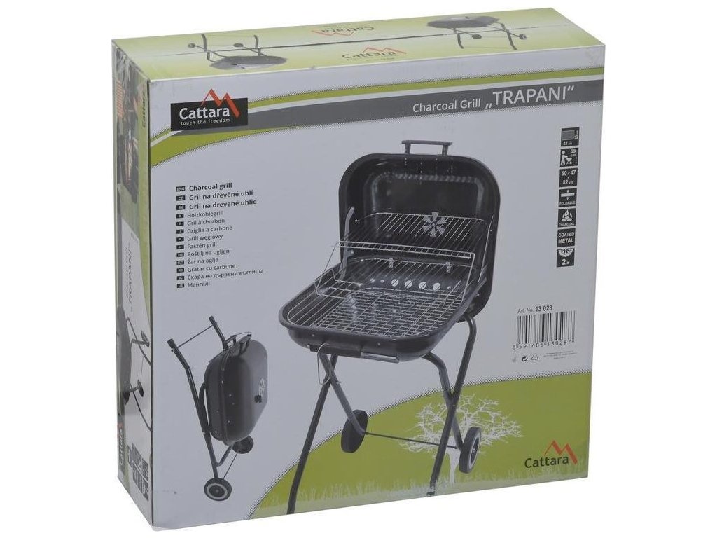 Zahradní gril Cattara TRAPANI v obdélníkovém provedení se hodí na každou terasu nebo zahradu. Konstrukce z ocelového plechu se smaltovaným povrchem je odolná a snadno se udržuje. Díky čtyřem kovovým nohám, dvěma plastovým kolečkům a madlům gril snadno kdykoliv přemístíte. Ve spodní navíc najdete zpevňující rám pro větší stabilitu. Grilovací rošt i odkládací plocha jsou vyrobené z chromované oceli. Grilování vám usnadní také regulovatelná ventilace.