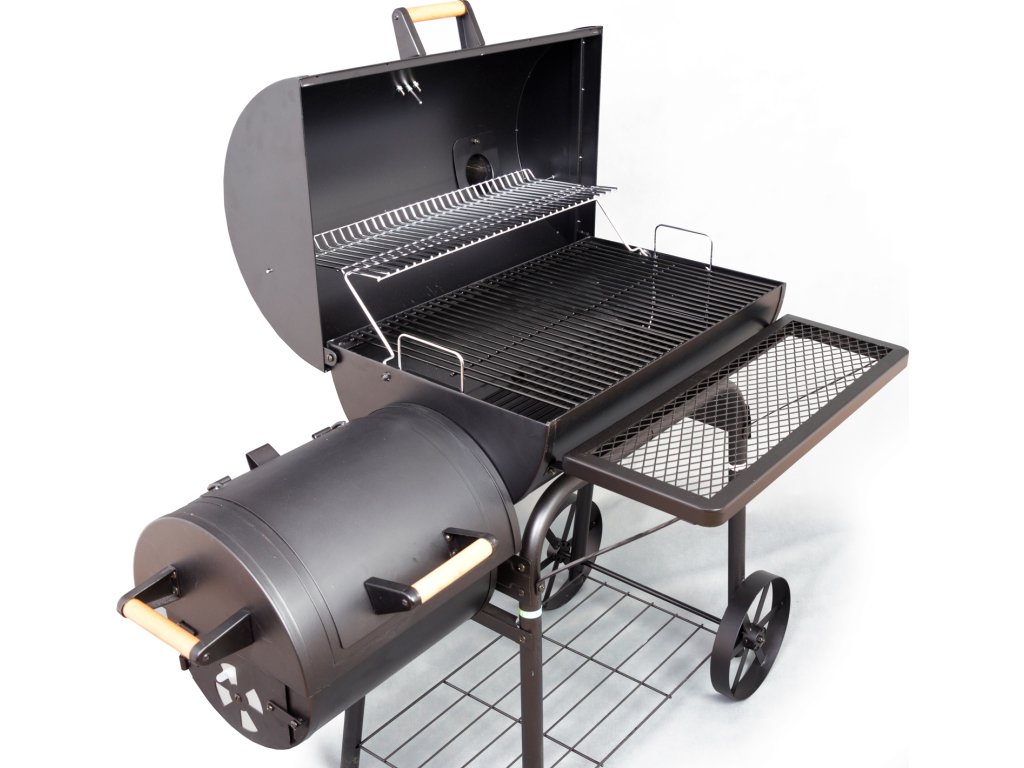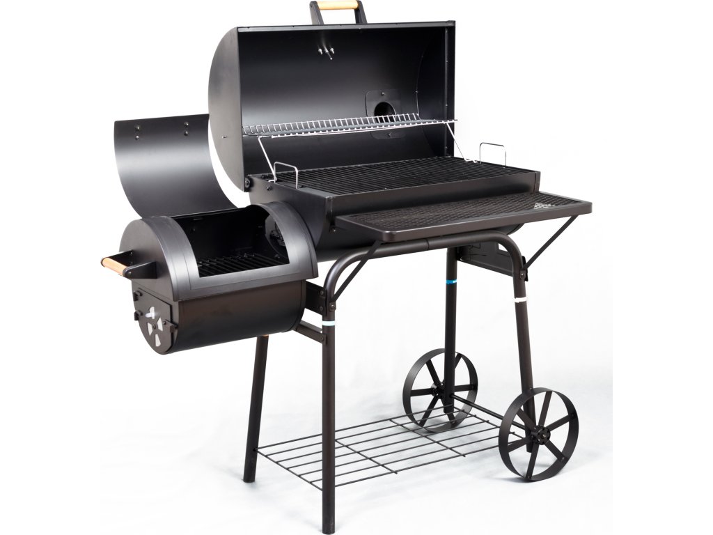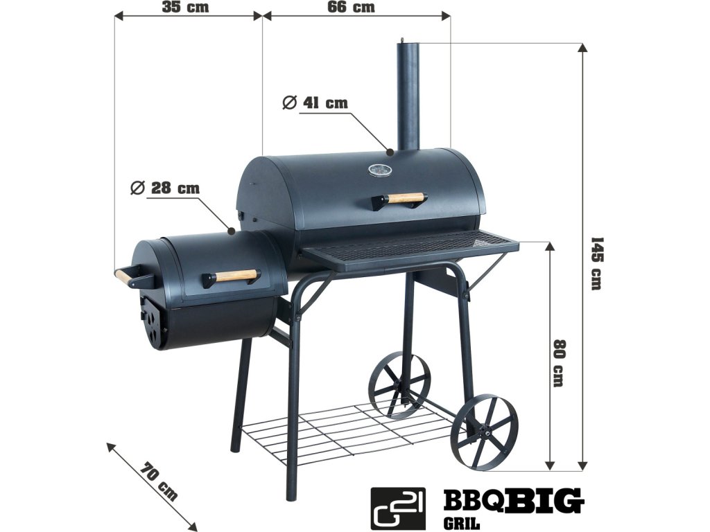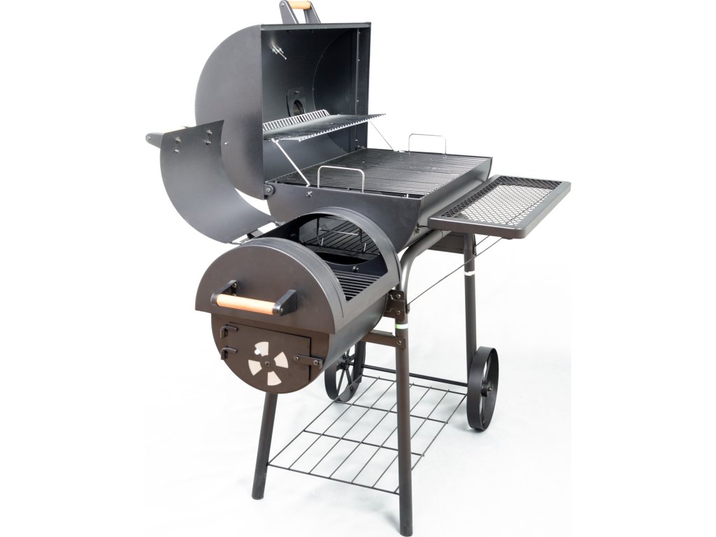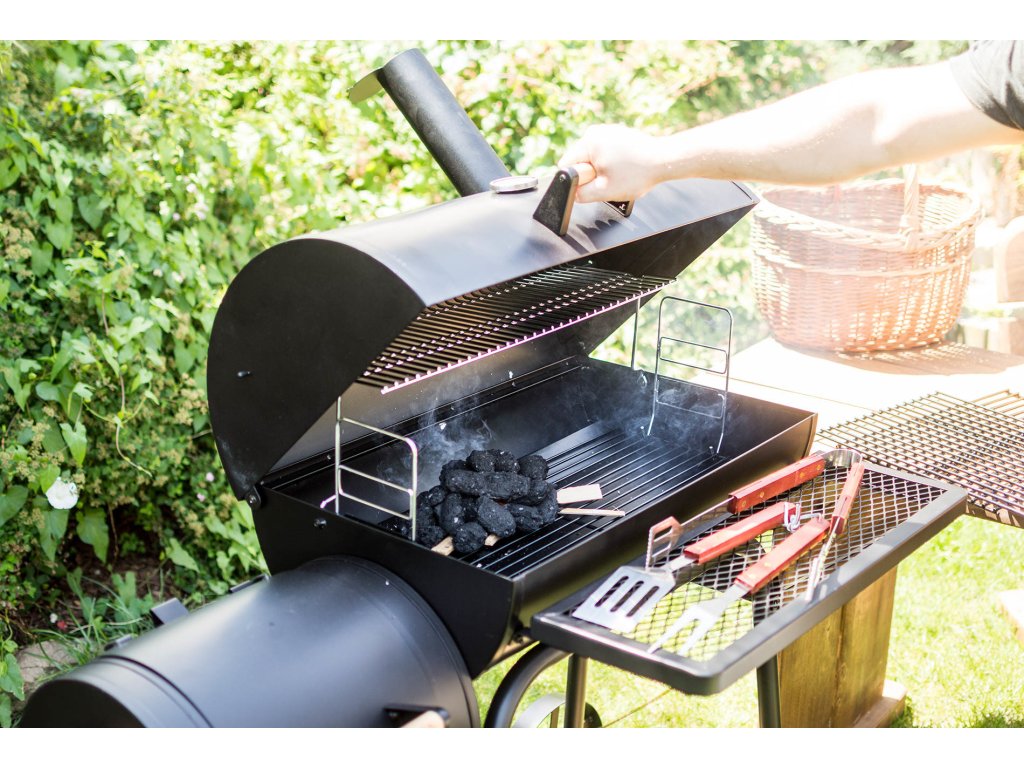 Velký zahradní gril s udírnou má dvě topeniště a grilovací plochy. To znamená, že můžete připravovat pokrmy v různé intenzitě žáru současně. K jeho roztopení použijte dřevěné uhlí, dřevo nebo brikety. Pro dokonalý zážitek z uzení doporučujeme použit tvrdé dřevo, např. z dubu, buku nebo břízy. Na závěr použijte dřevěné piliny nebo hobliny z tvrdého dřeva, ideálně švestky, jabloně nebo hrušky.