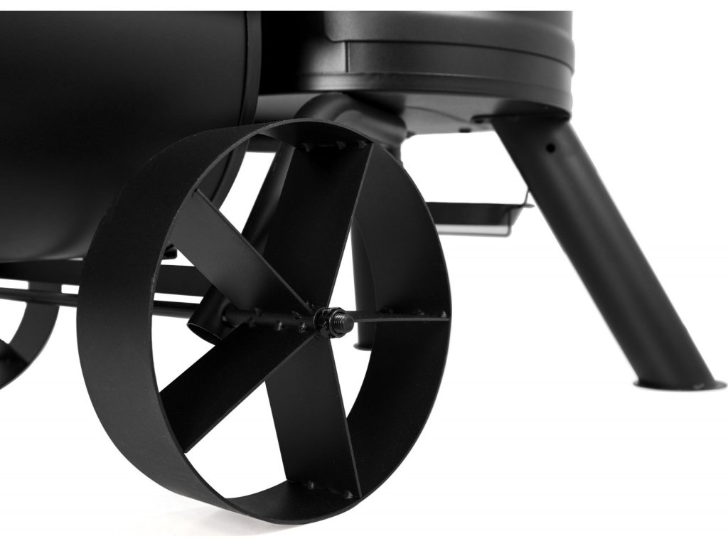 Na místo, kde chcete grilovat, gril Kansas s udírnou přesunete snadno díky madlu a dvěma velkým kolům o průměru 25 cm, stabilitu zase zajišťují dvě masivní opěrné nohy.