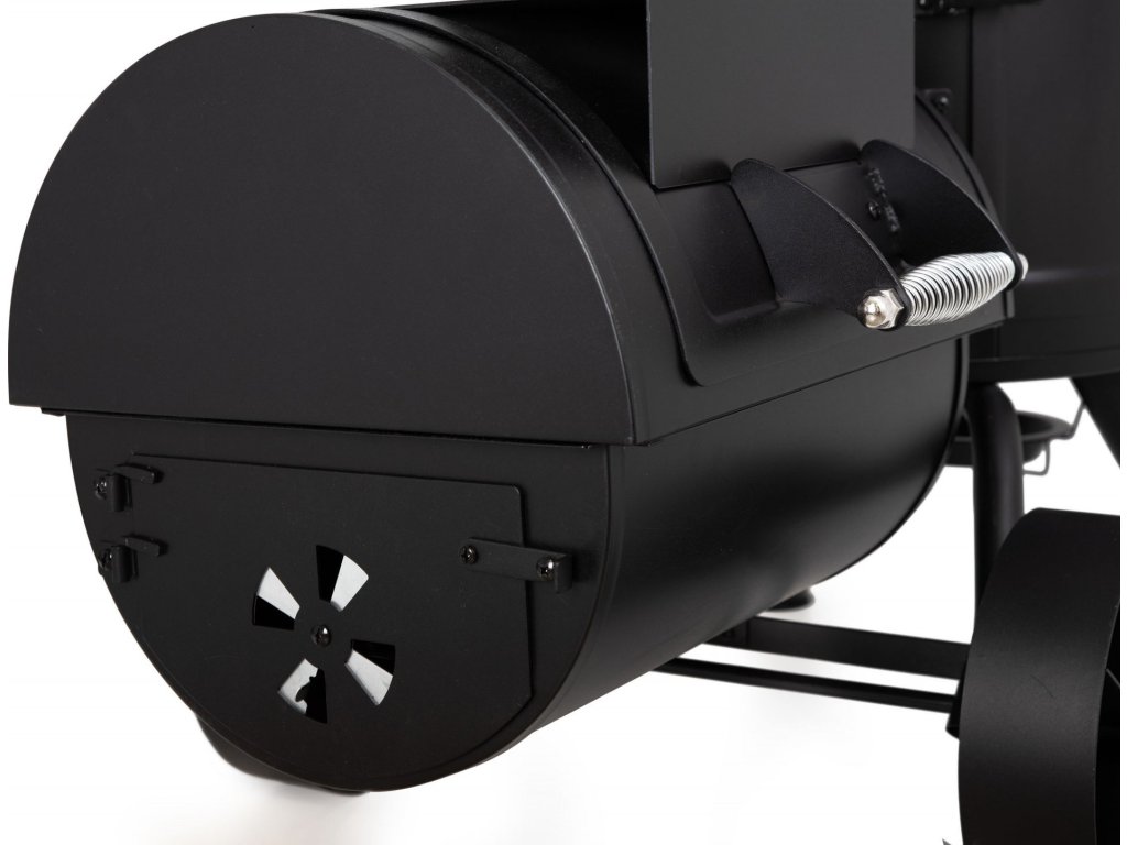 Gril s udírnou G21 Kansas má důmyslný systém regulace vzduchu a praktický vestavěný teploměr s vyznačením teplotních zón pro snadnou orientaci při regulaci vzduchu i pro zjištění optimální teploty uzení.