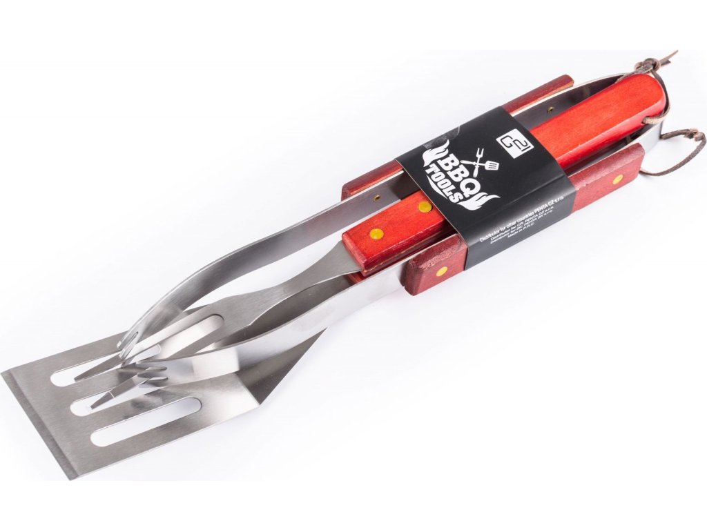 Sada obsahuje kompletní nástroje pro grilování bez potíží. Součástí sady je obracečka, vidlička a kleště. Délka nářadí 43 cm zajišťuje, že na vás nebudou při grilování šlehat plameny ani prskat olej z masa.