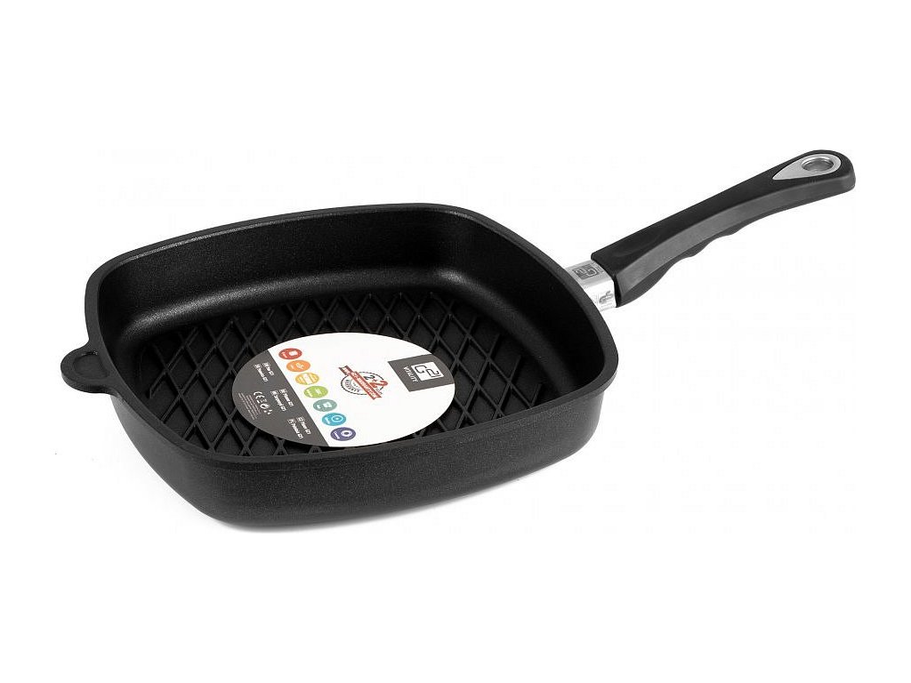 Pokud hledáte nejlepší grilovací pánev, radujte se. Právě jste našli čtvercovou pánev na grilování o rozměrech 28 x 28 cm a výšce 6,5 cm. Pánev je univerzální pro všechny typy ohřevů, teplo vede dokonale rovnoměrně, jídlo se na ní díky speciální nepřilnavé vrstvě LOTAN® nepřipaluje a smažit či grilovat můžete bez použití oleje.
