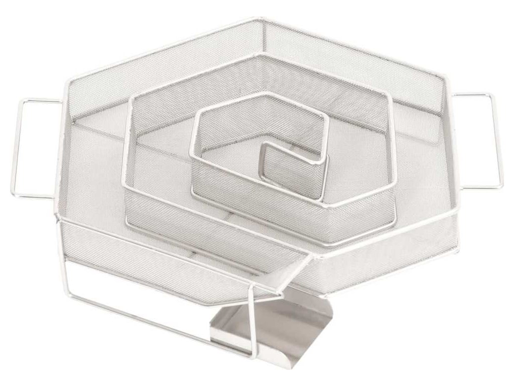 - Generátor studeného kouře: Stačí naplnit pilinami a zapálit čajovou svíčkou, dokud piliny nezačnou měnit barvu. Vyjměte čajovou svíčku a umístěte generátor kouře do udírny. Kompaktní šestihranná mřížka umožňuje rovnoměrné a pomalé hoření štěpků po dobu až 8 hodin.