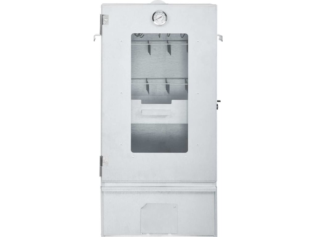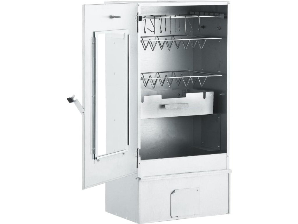 - Indikativní funkce: Udírna je vybavena teploměrem pro kontrolu teploty v komoře. Skrz skleněné okno udírny můžete sledovat pokrm uvnitř a zajistit tak co nejlepší přípravu.