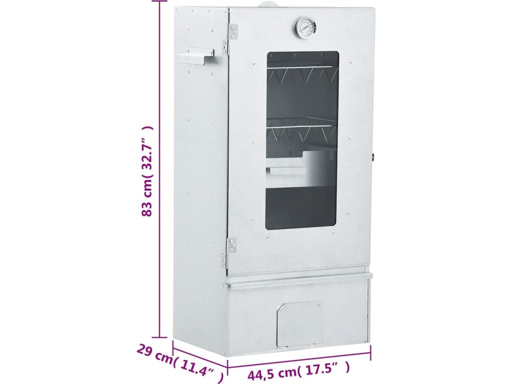 - Indikativní funkce: Udírna je vybavena teploměrem pro kontrolu teploty v komoře. Skrz skleněné okno udírny můžete sledovat pokrm uvnitř a zajistit tak co nejlepší přípravu.