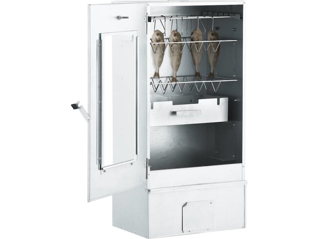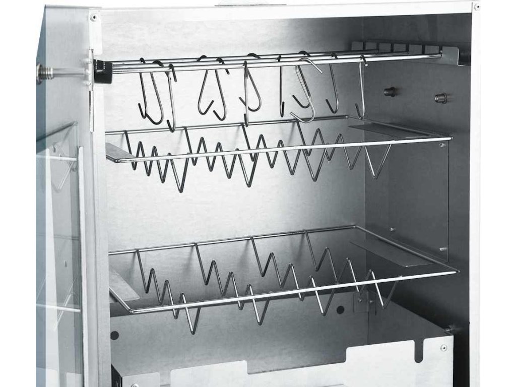 - Dostatek prostoru na uzení: Venkovní udírna poskytuje dostatek prostoru pro uzení masa, ryb, klobás apod. Pomocí přiložených háků ve tvaru písmene S a roštů bude grilování pohodlnější.