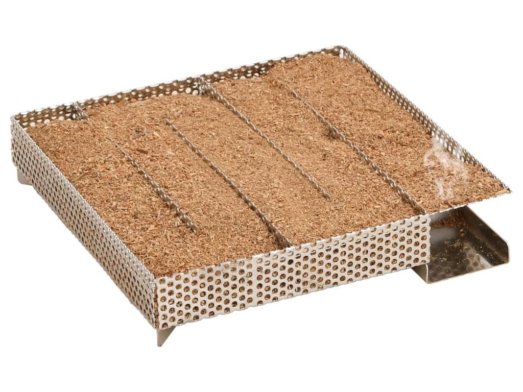 - Snadné použití: Stačí naplnit pilinami a zapálit čajovou svíčkou, dokud piliny nezačnou měnit barvu. Vyjměte čajovou svíčku a vložte generátor do udírny. Kompaktní čtvercová mřížka umožňuje rovnoměrné a pomalé hoření štěpků po dobu až 12 hodin.
