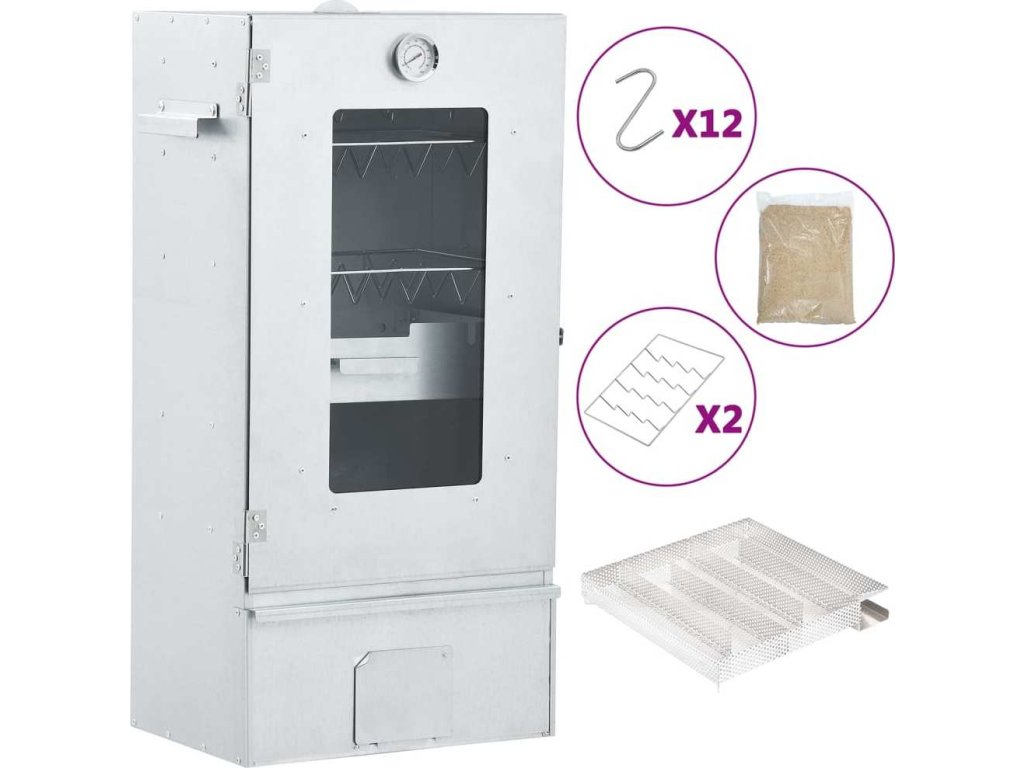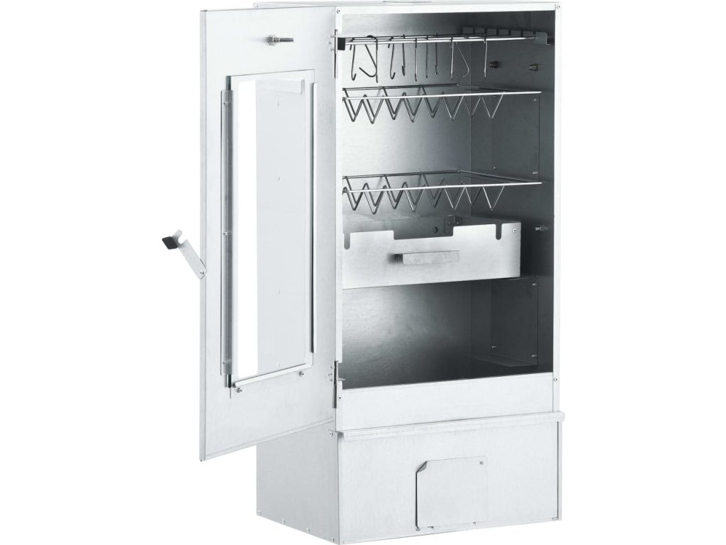 - Dostatek prostoru na uzení: Venkovní udírna poskytuje dostatek prostoru pro uzení masa, ryb, klobás apod. Pomocí přiložených háků ve tvaru písmene S a roštů bude grilování pohodlnější.