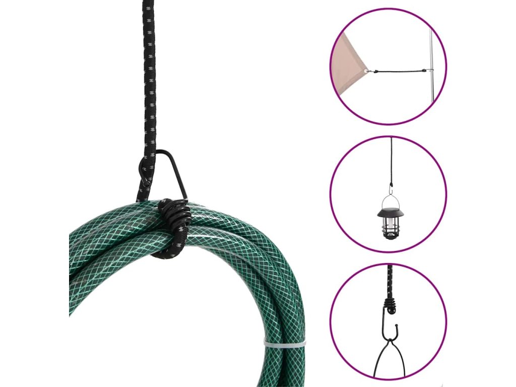 - Více možností použití: Tento gumicuk s háčky má vysokou pružnost a lze ho použít k přepravě a utahování předmětů. Kromě toho je vhodný také k upevnění stanů, plachet, transparentů či zavazadel.