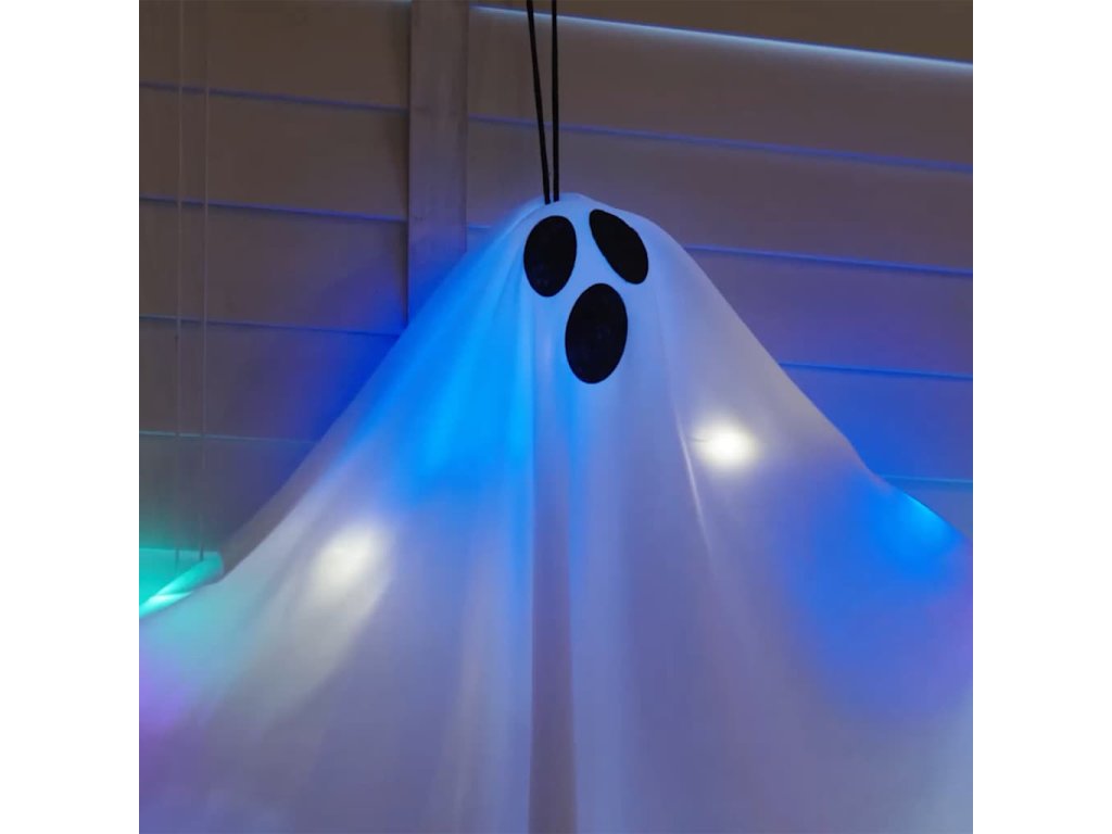 Tento visící halloweenský duch je přesně to, co potřebujete, abyste do vaší dekorace přidali trochu ducha. Jeho zábavný, moderní design je ideální pro váš obývák. Vyrobený z lehkého polyesteru, má tvar ducha, který se jemně houpá, a tím se skvěle hodí na vaši halloweenskou oslavu. Tato dekorace opravdu upoutá pozornost svými blikajícími vícebarevnými LED světly. Nechte tento unikátní kousek pomoct vám vytvořit nezapomenutelnou halloweenskou noc plnou zábavy a překvapení.