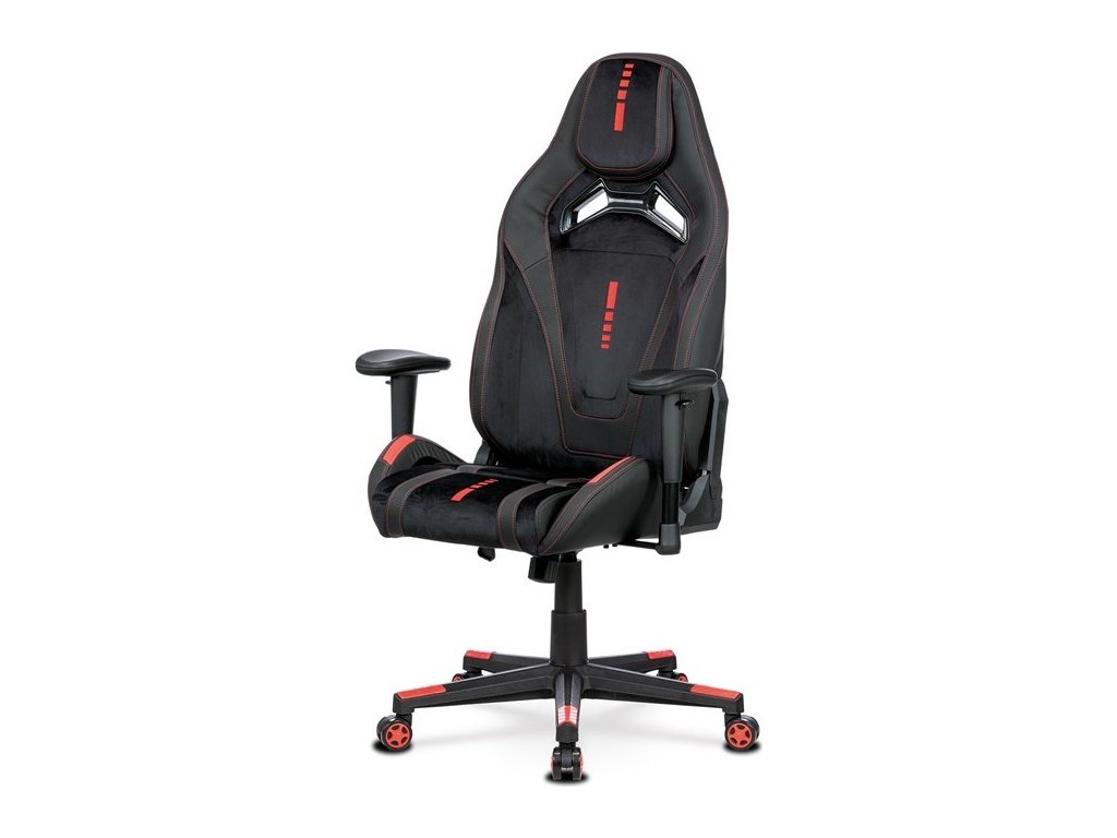 Herní křeslo, houpací mechanismus, černá látka, KA-F07 RED KA-F07 RED
