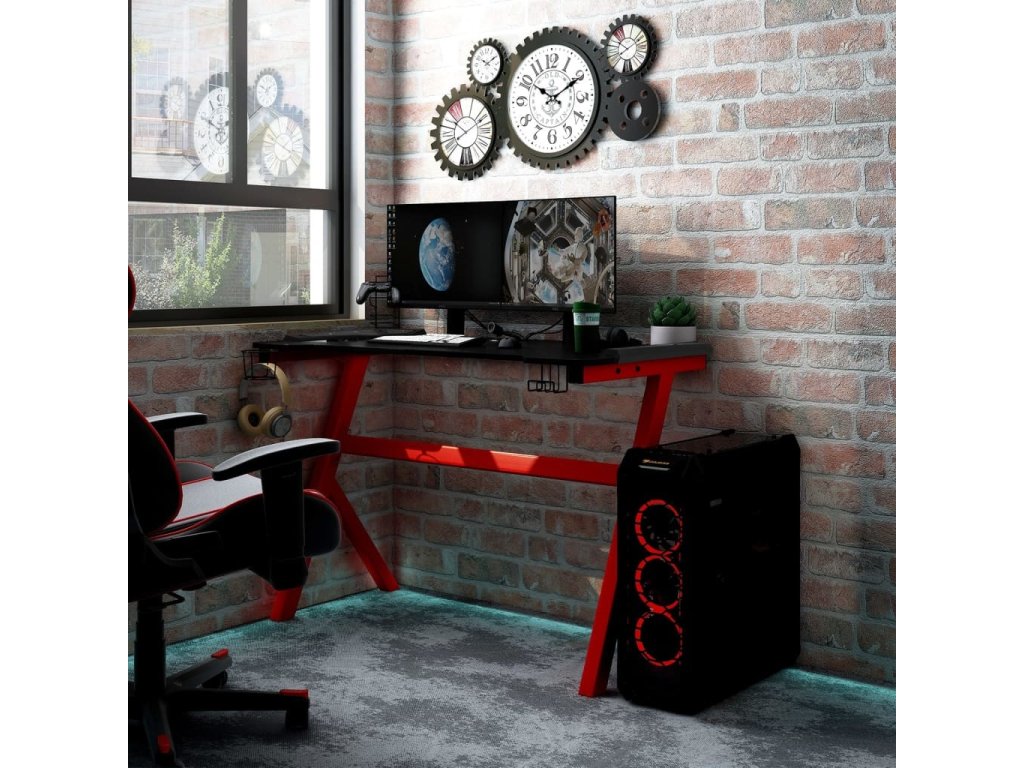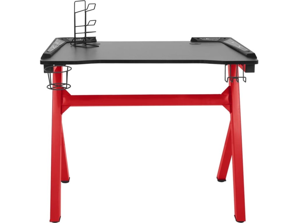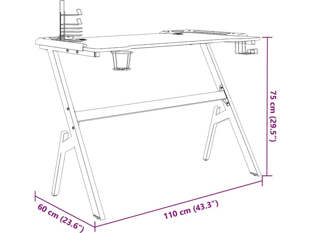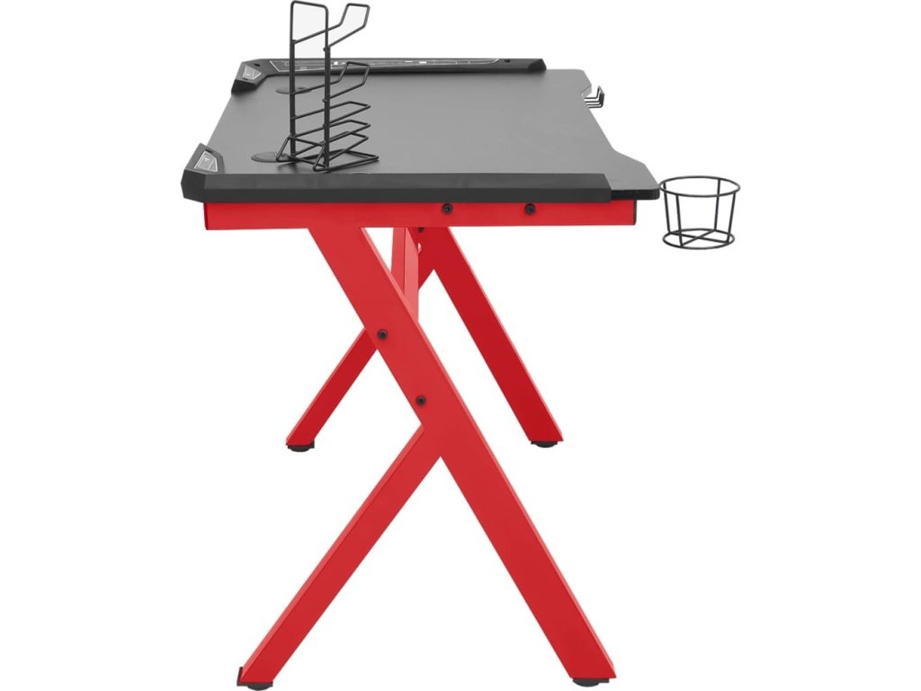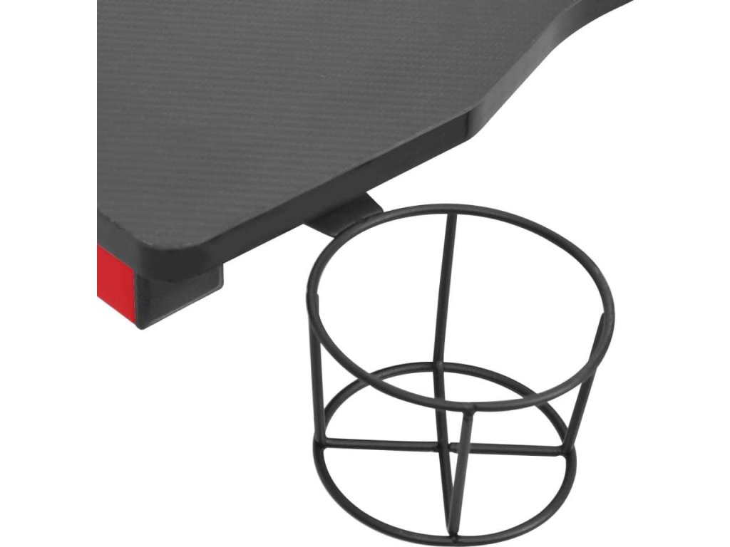 Efektivní ergonomický design nabízí perfektní herní pozici, takže váš výkon bude kvalitnější a zároveň vydržíte hrát déle! Tento počítačový stůl je vybaven držákem na sluchátka a na ovladač, budete mít tedy vše pěkně po ruce. Na pravé straně desky máte k dispozici i držák na nápoje. Stůl nabízí dostatek prostoru pro vaše herní monitory, PC, klávesnice a další herní vybavení. Železné nohy ve tvaru Y zajišťují stabilitu a uspokojí požadavky každého hráče.